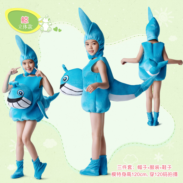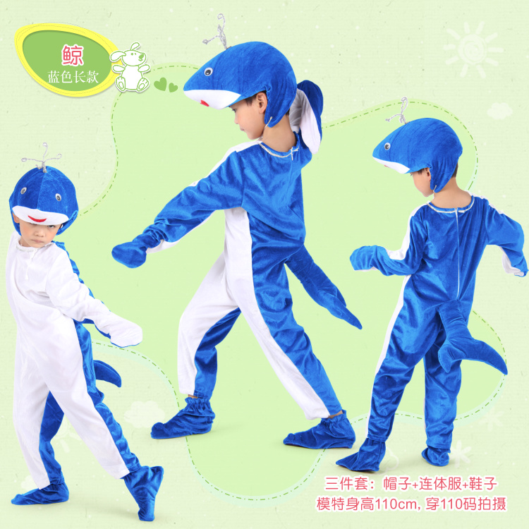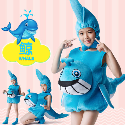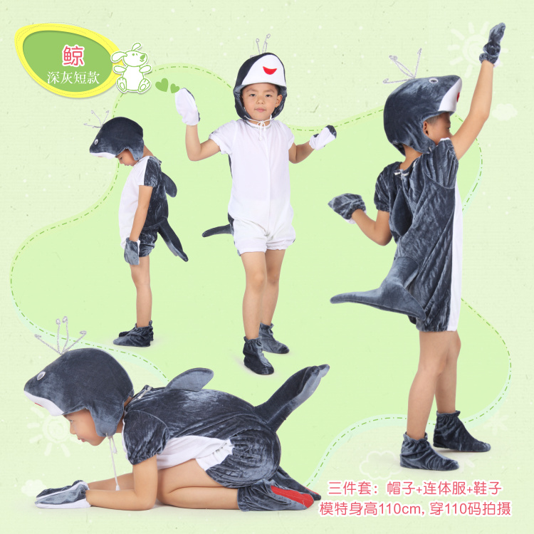 儿童海洋动物鲸鱼演出服海底世界蓝鲸虎鲸表演服装卡通亲子白鲨鲸