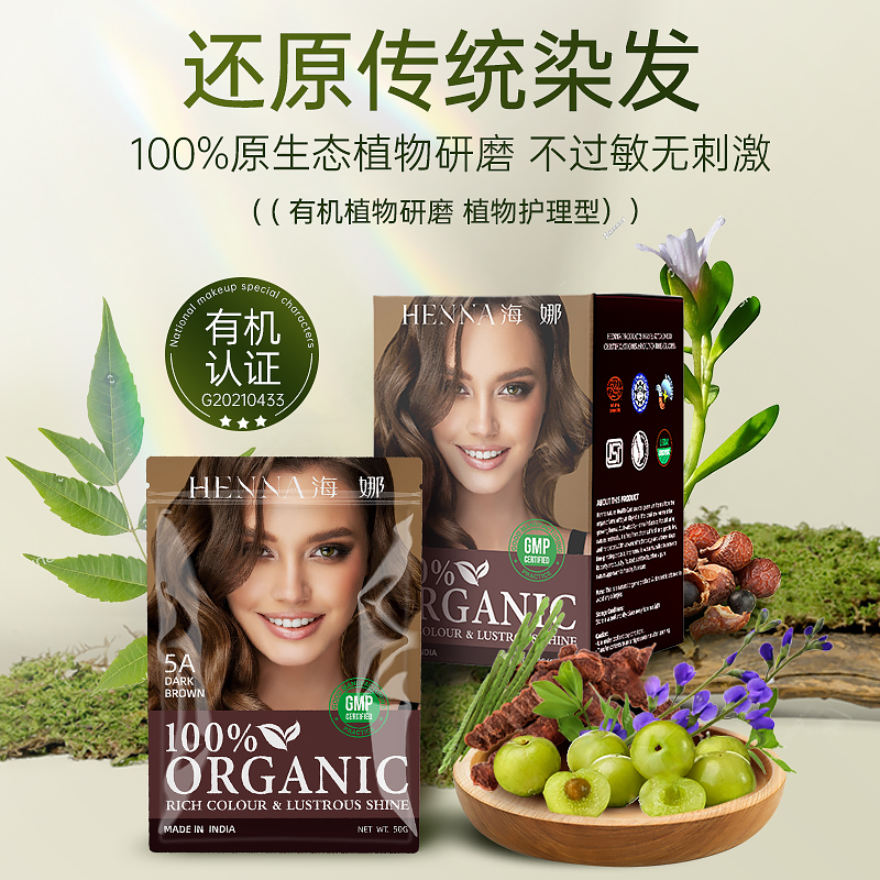 有机海娜粉纯植物染发粉染发剂膏天然孕妇印度正品进口官方旗舰店