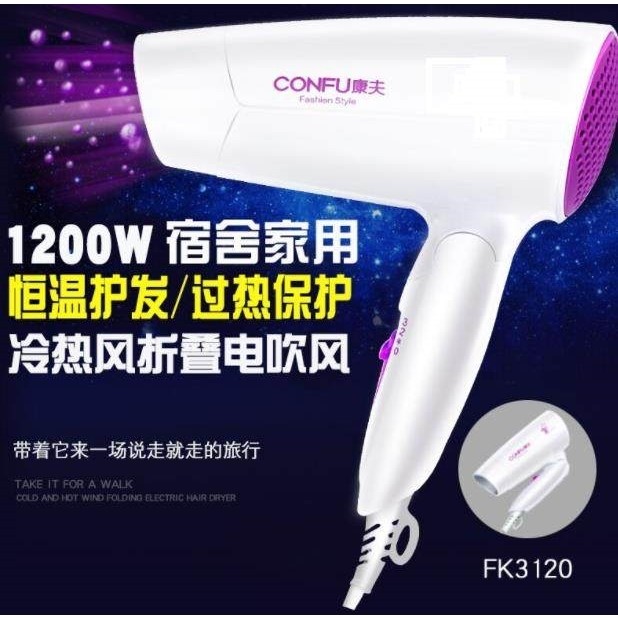 康夫电吹风家用1600W折叠式旅行风机筒便携式冷热风宾馆酒店用吹