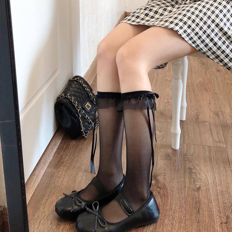 秋冬薄奶白色小腿袜女透肉蕾丝花边中筒袜子lolita甜美白丝1013z