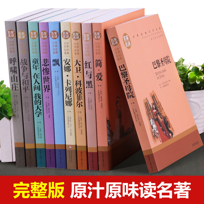 世界十大名著全套10册巴黎圣母院简爱复活傲慢与偏见飘红与黑瓦尔登湖悲惨世界呼啸山庄无删减外国文学小说青少年中小学生课外书籍