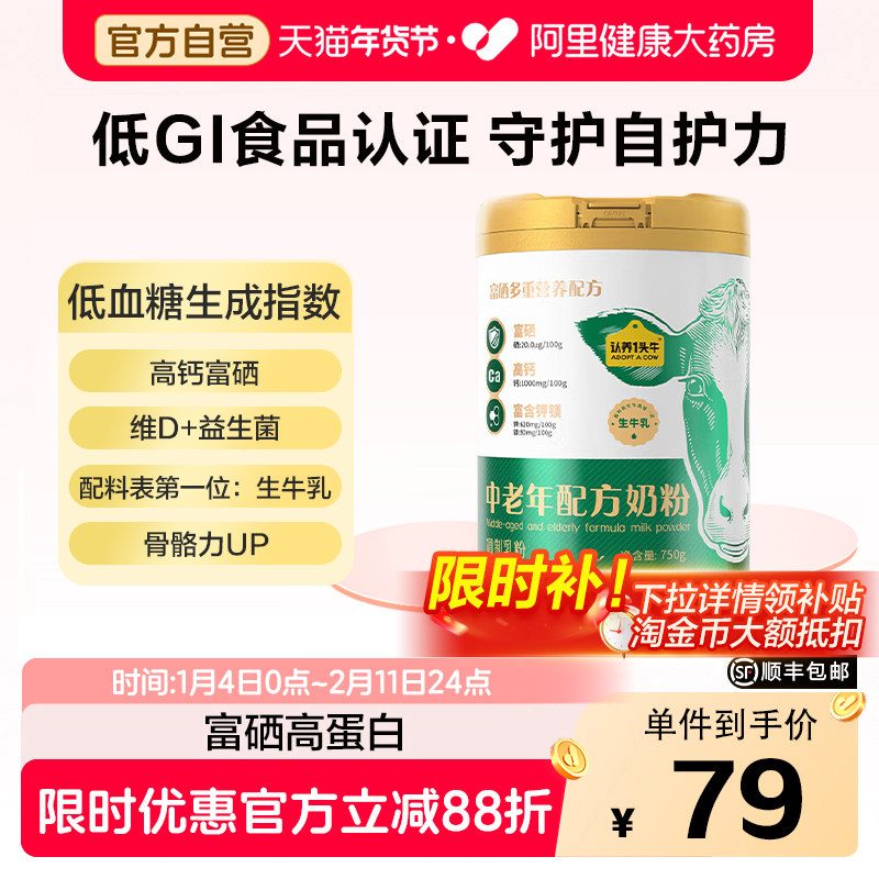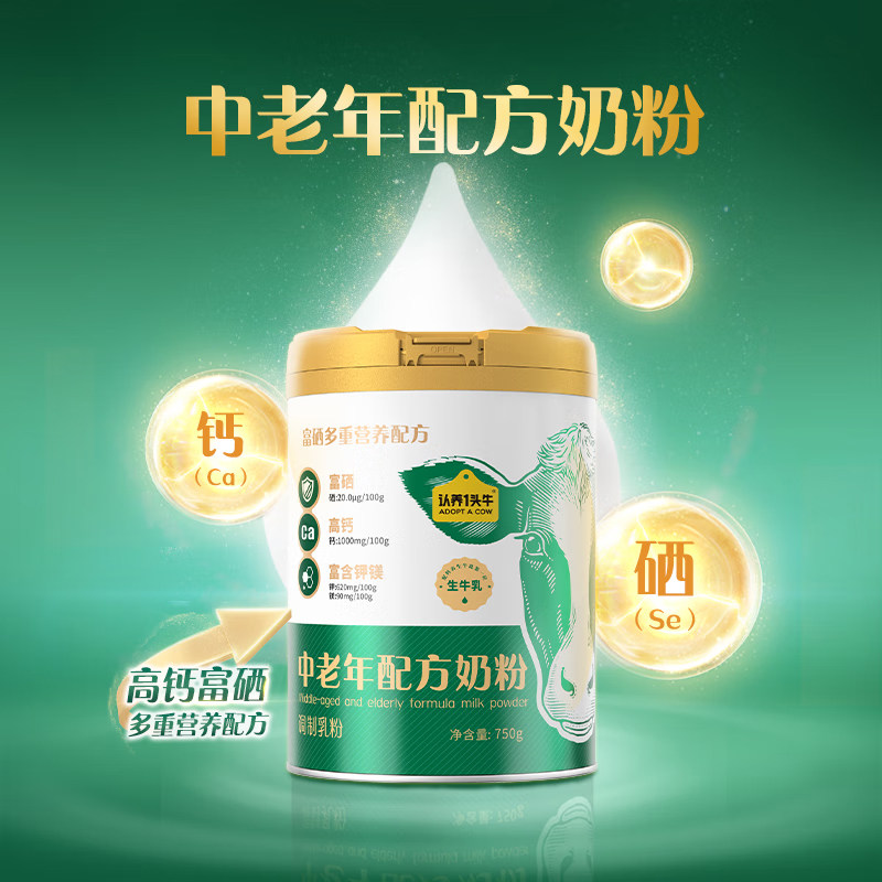 【两罐赠礼盒】认养一头牛高钙富硒中老年奶粉长辈年货节送礼