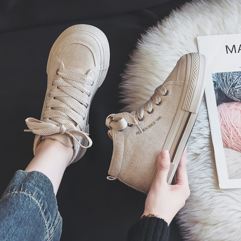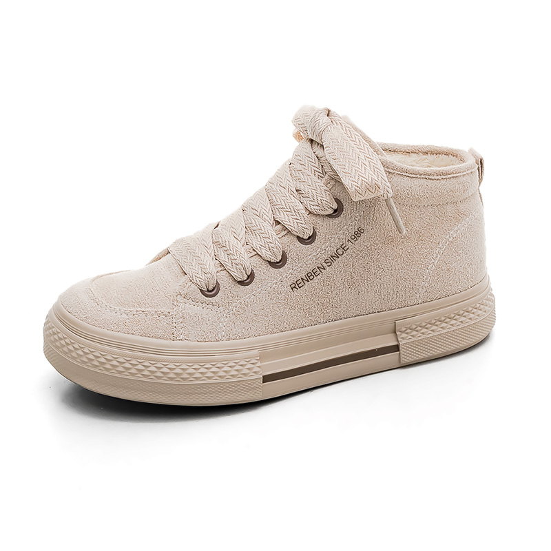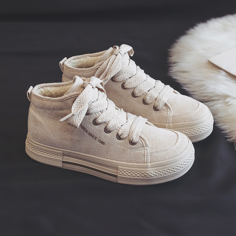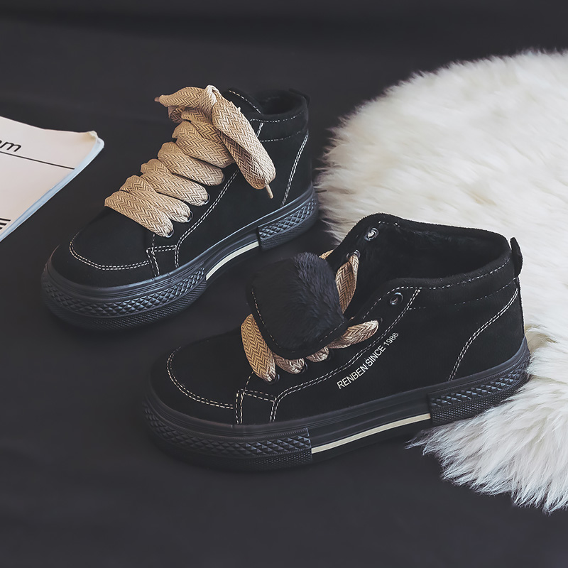 人本加绒大码高帮女鞋40 41 42冬季保暖帆布休闲厚底百搭二棉鞋43