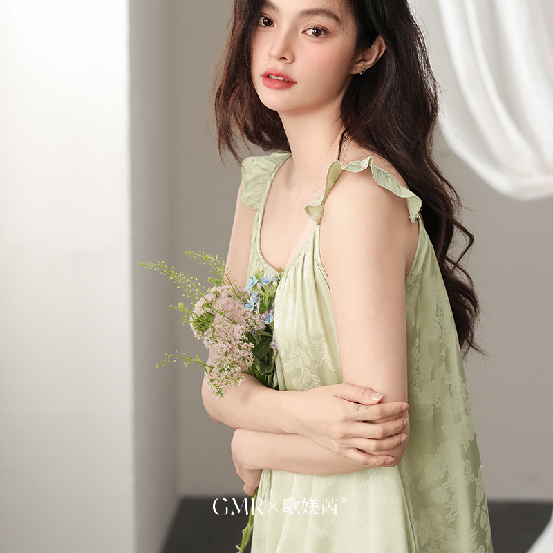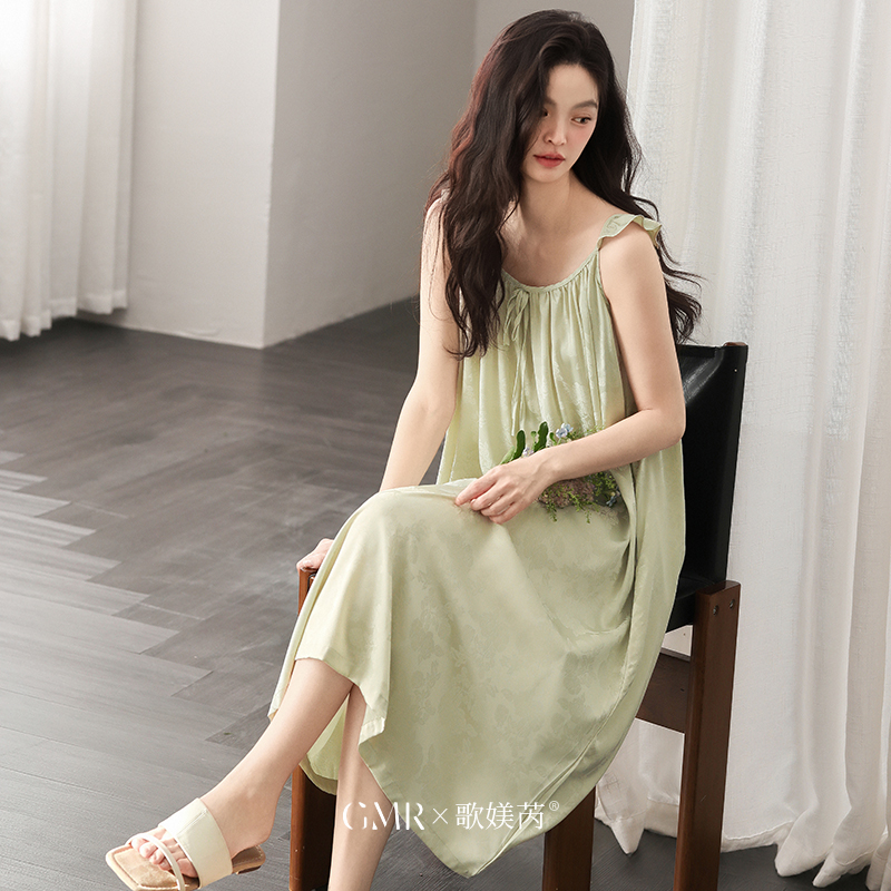 2025年夏季新款吊带睡裙女凉感冰丝绸薄款大码带胸垫可外穿睡衣裙