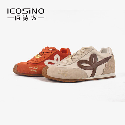 佰诗奴真皮德训鞋女2026年春季新款潮流百搭休闲运动鞋内增高单鞋