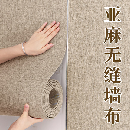 亚麻墙布无缝全屋墙纸自粘防水防潮卧室电视背景墙贴装饰遮丑壁纸