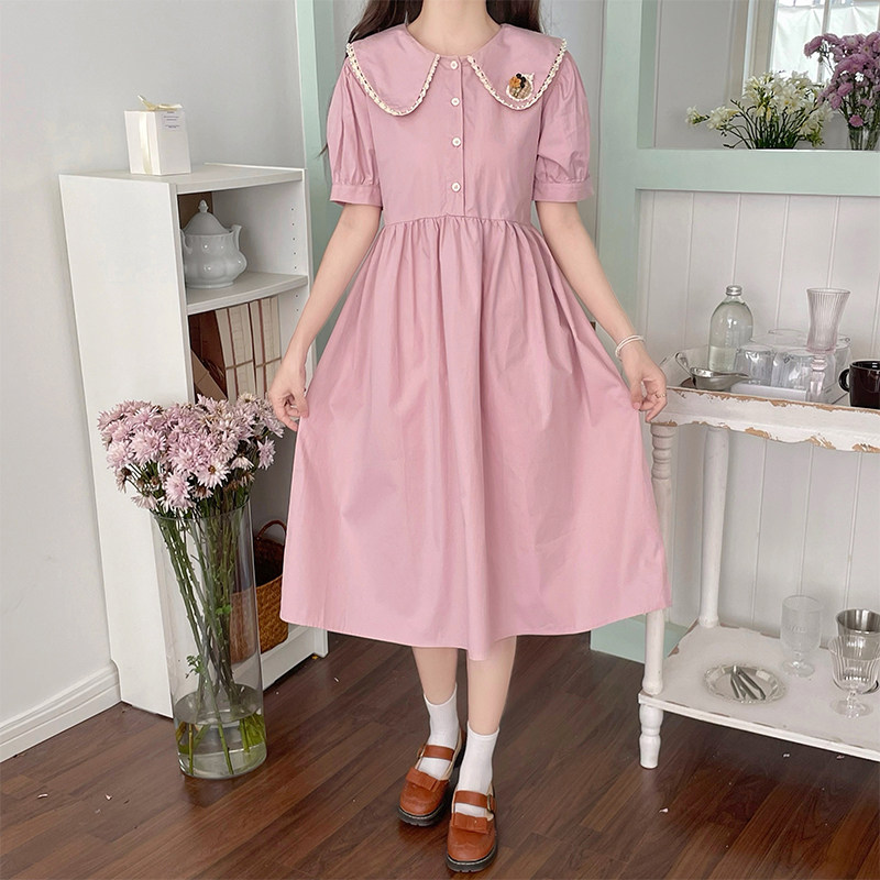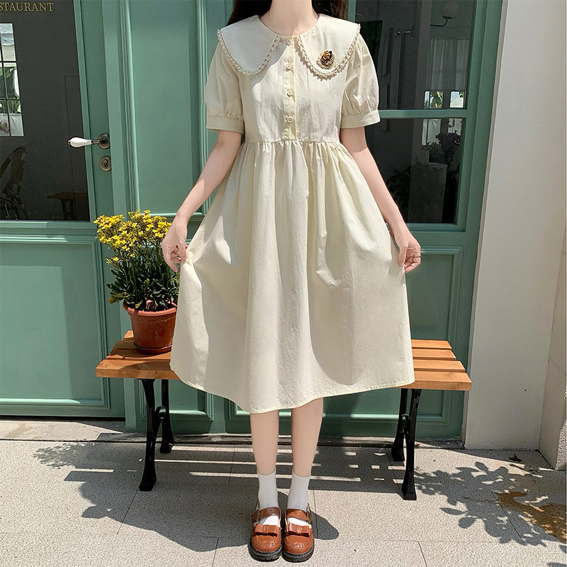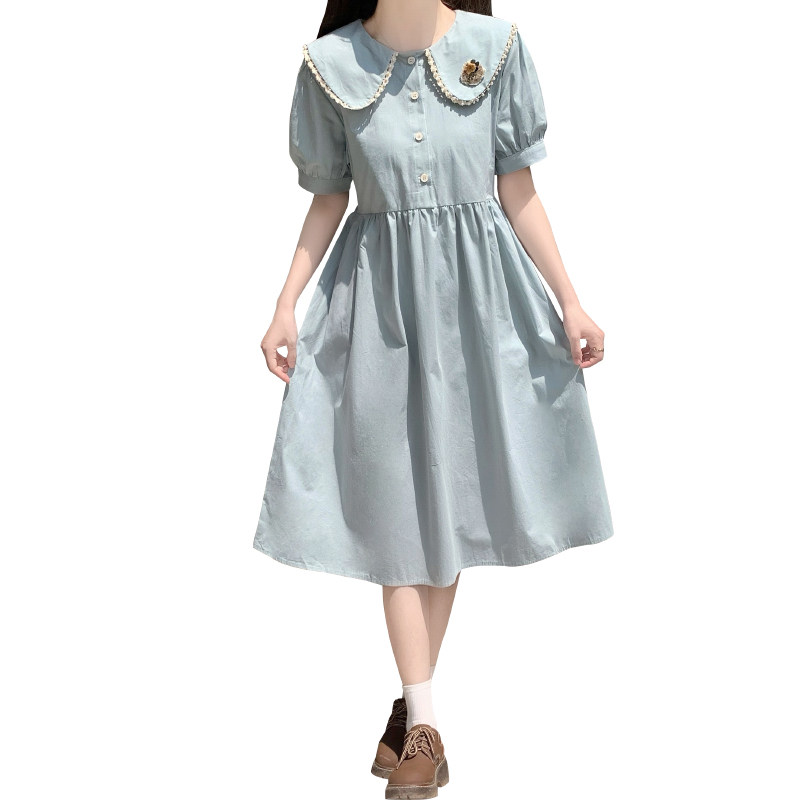 小个子泡泡袖甜美娃娃领连衣裙女夏季2025新款初中高中学生休闲裙