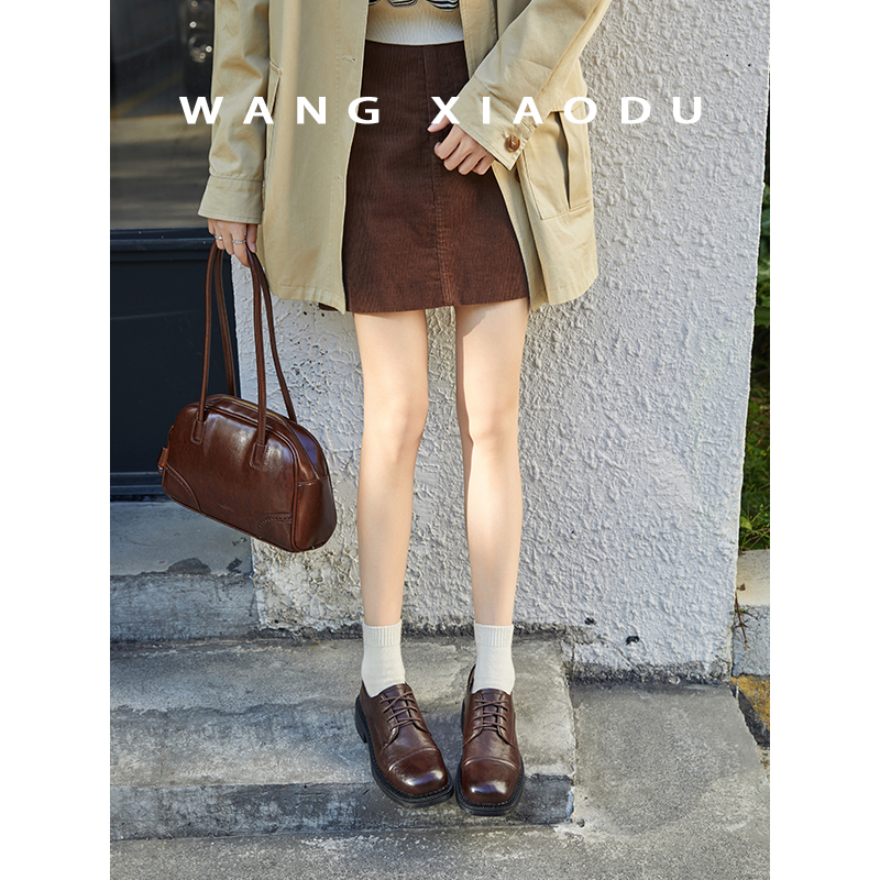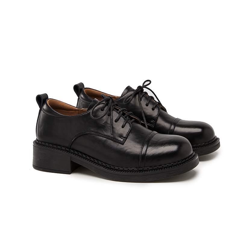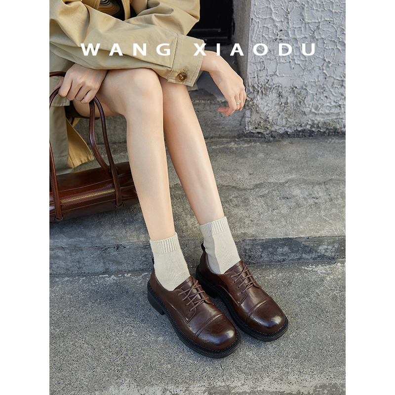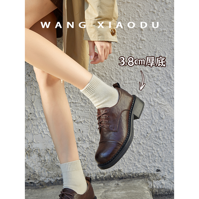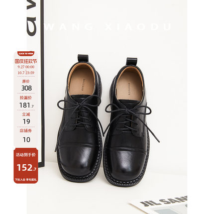 【王小毒】书信邮票○粗跟圆头布洛克鞋女百搭新黑色英伦风小皮鞋