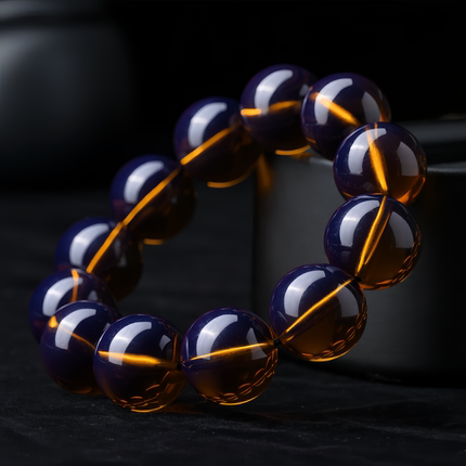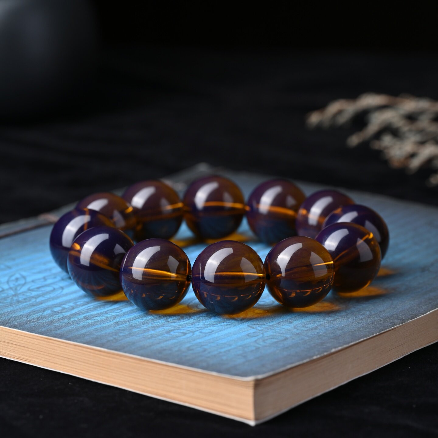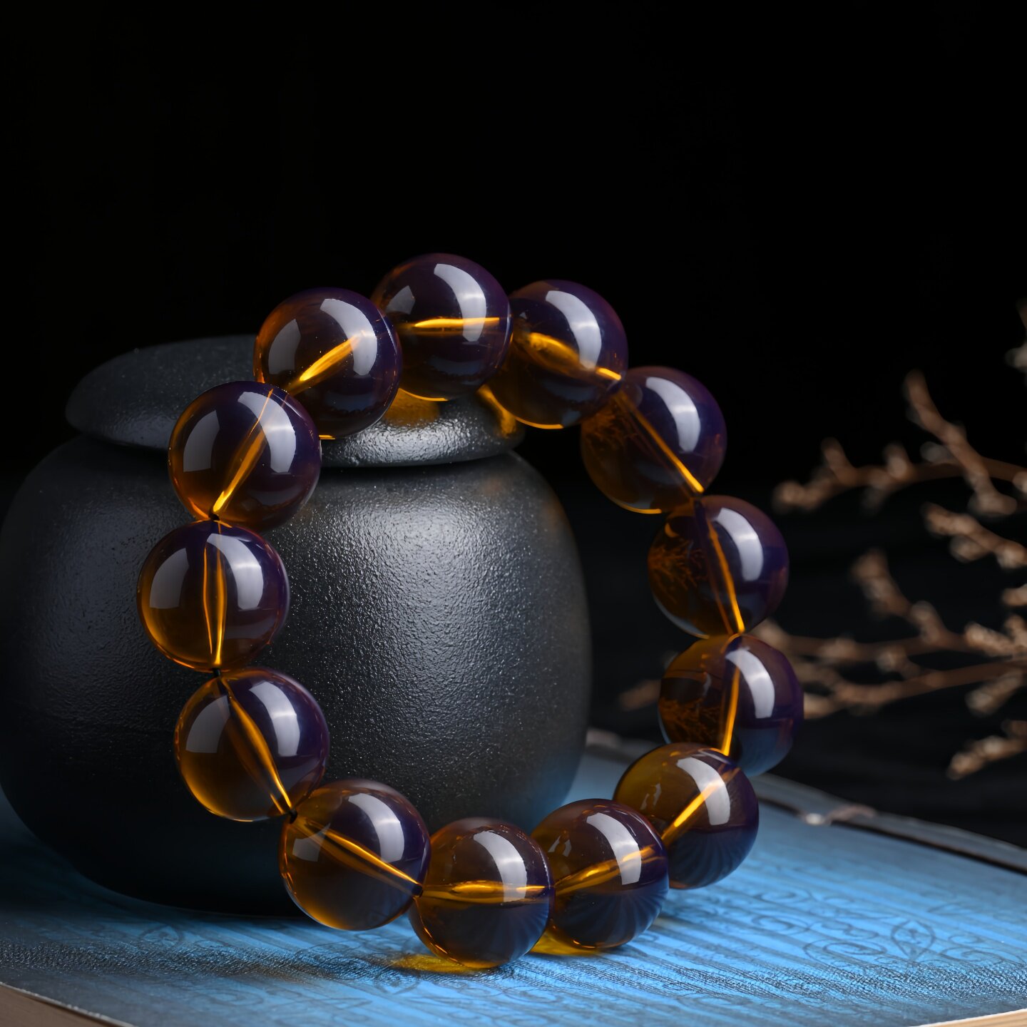 多米尼加紫罗兰琥珀遇阳光变紫色蜜蜡单圈男女蓝珀手链手串浮盐水
