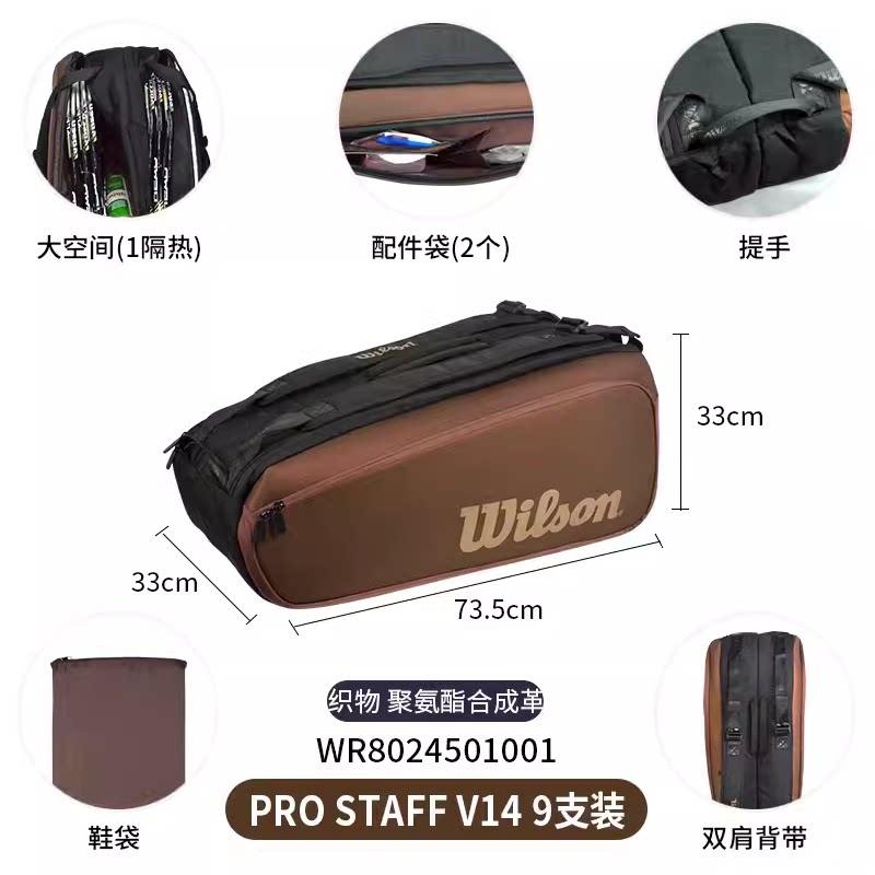 2023新品Wilson威尔胜网球包双肩两只装大容量手提9支装v14球拍包