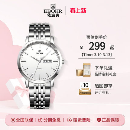 EBOHR依波表手表不锈钢情侣表简约时尚女表经典学生男表石英日历