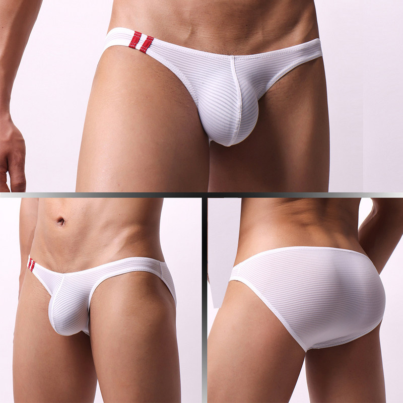男士三角内裤条纹状U凸大囊袋性感舒适透气青年比基尼速干短裤衩