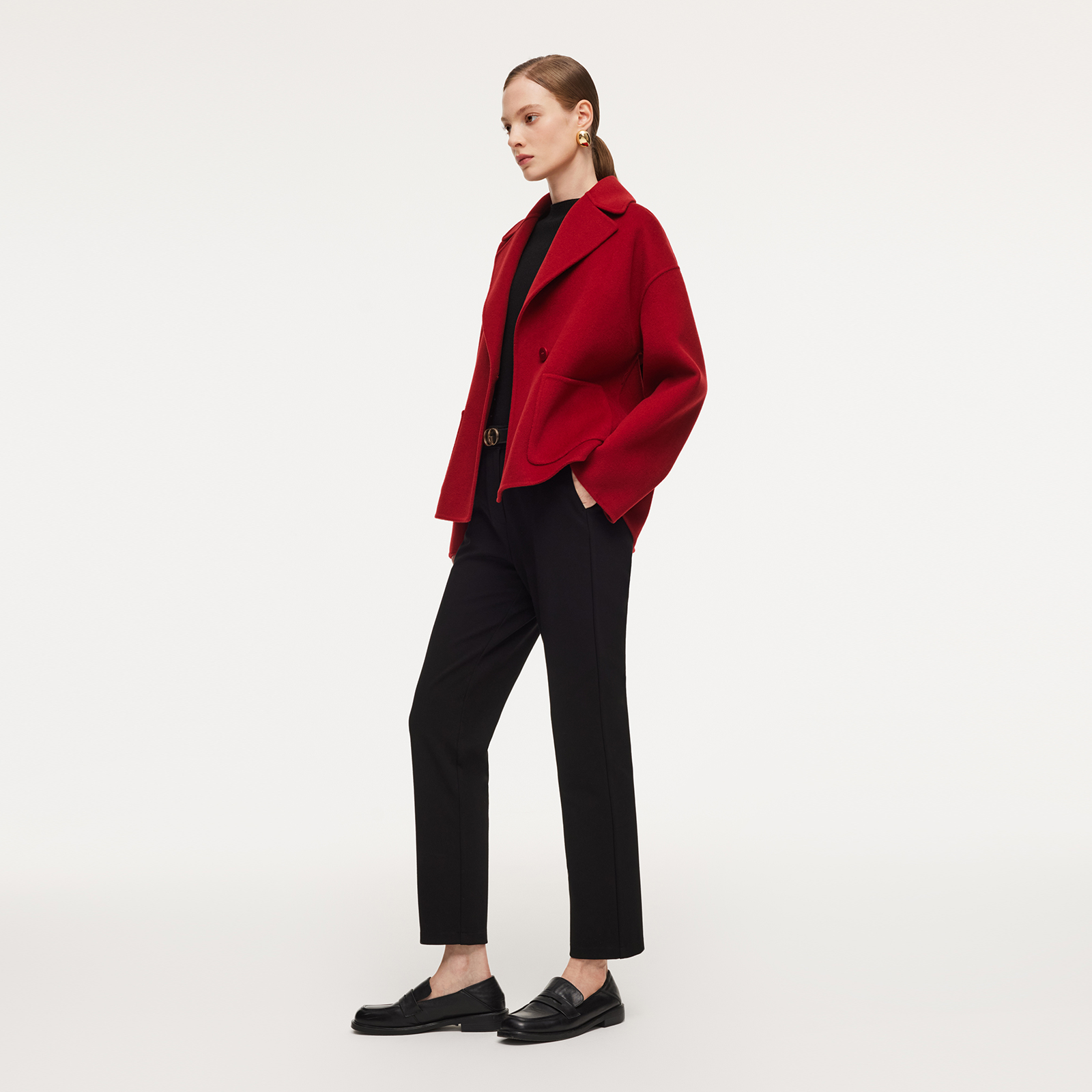 歌莉娅红色羊毛羊绒短大衣外套女