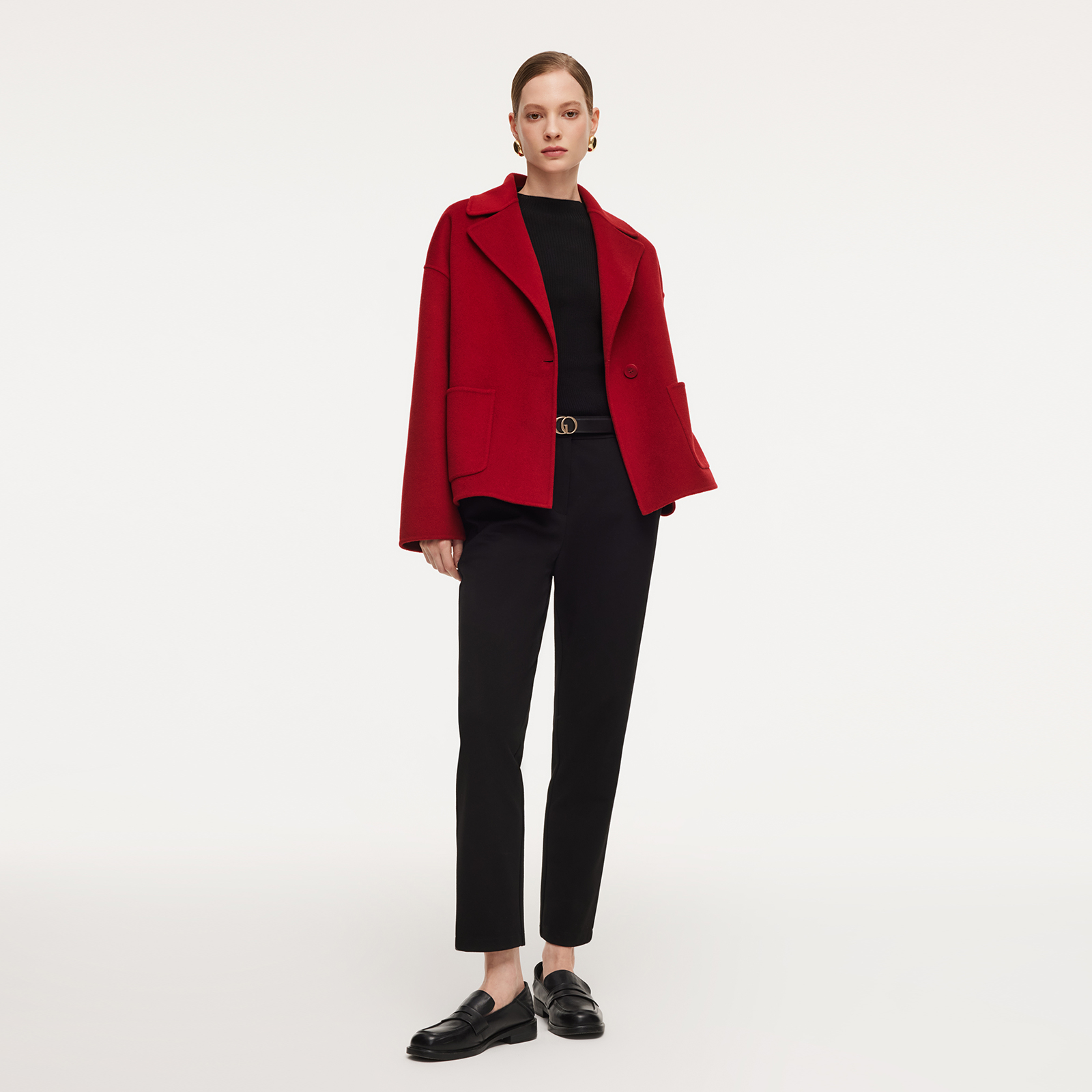歌莉娅红色羊毛羊绒大衣女秋冬2025新款双面呢短款外套1F1L6N180