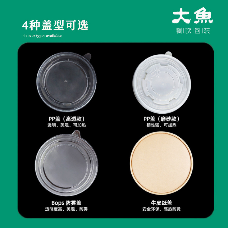 牛皮纸金箔圆形快餐盒带盖外卖打