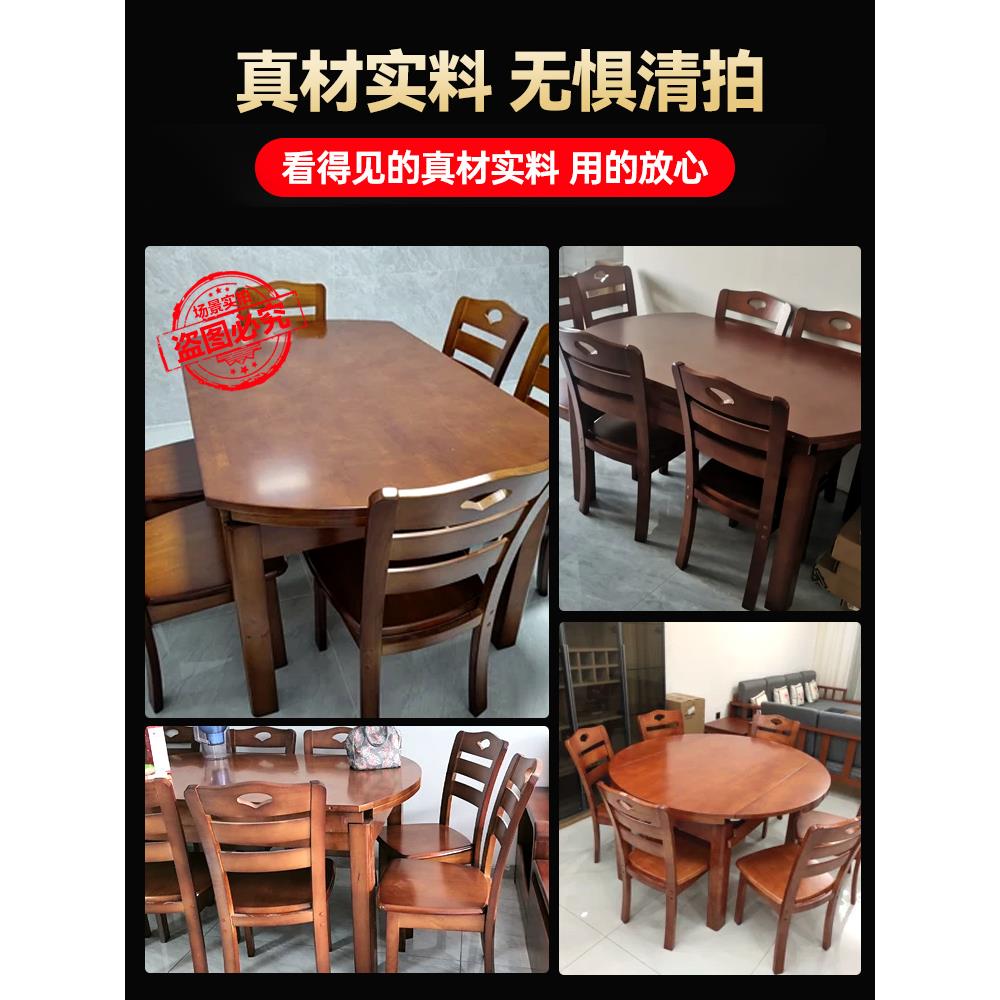 实木餐桌椅组合现代简约家用小户型可伸缩折叠圆形长方形吃饭桌子