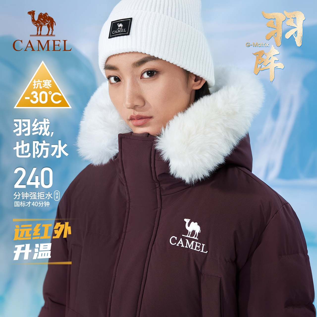 骆驼中长款运动羽绒服