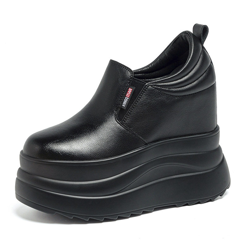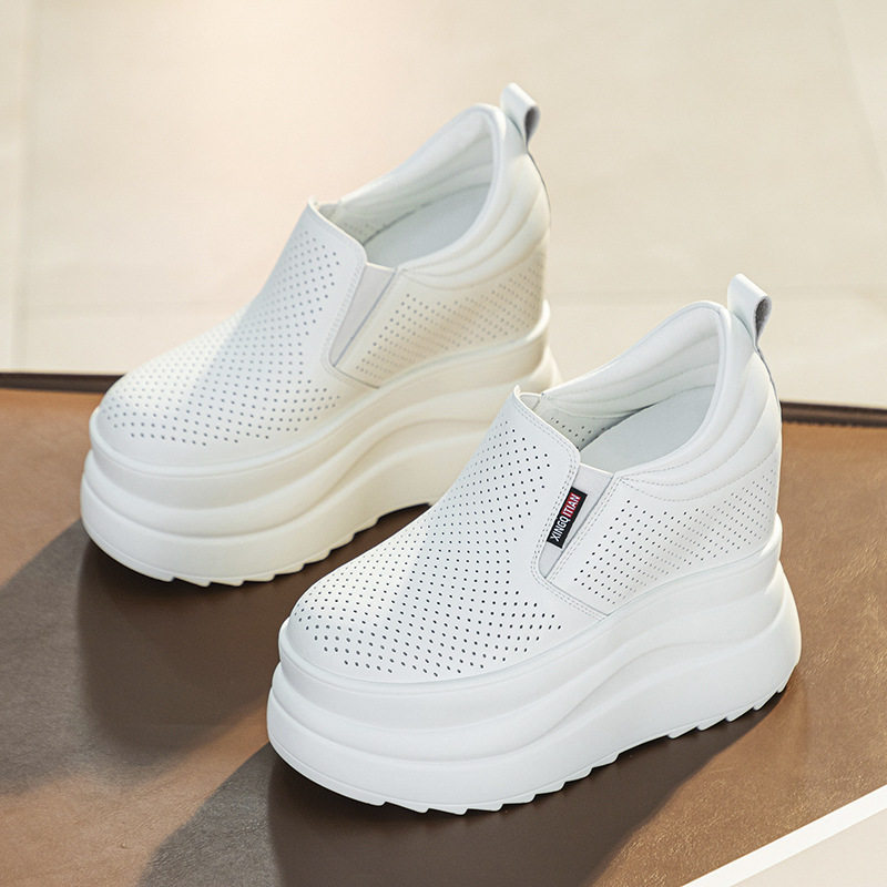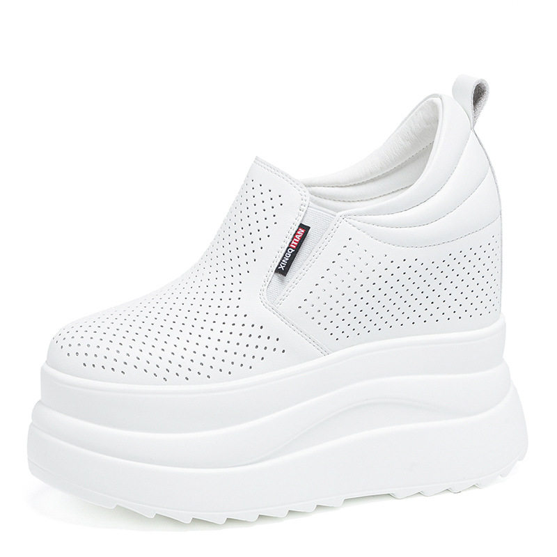 真皮超高跟轻便厚底增高小白鞋女内增高13cm百搭小个子坡跟休闲鞋