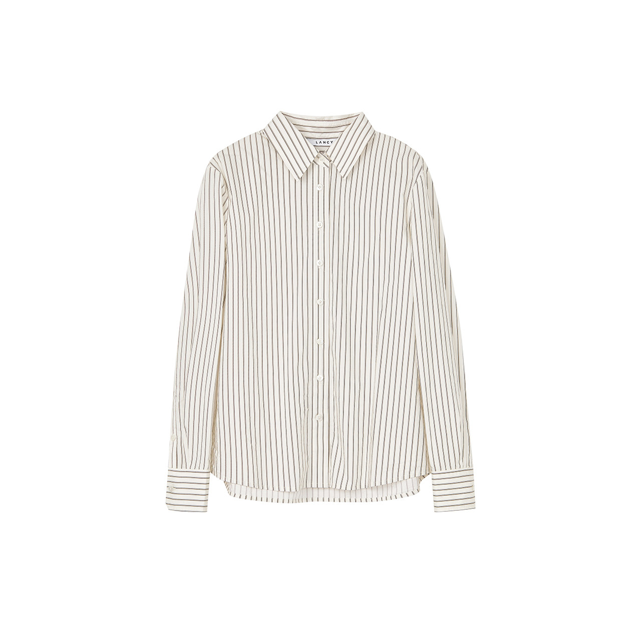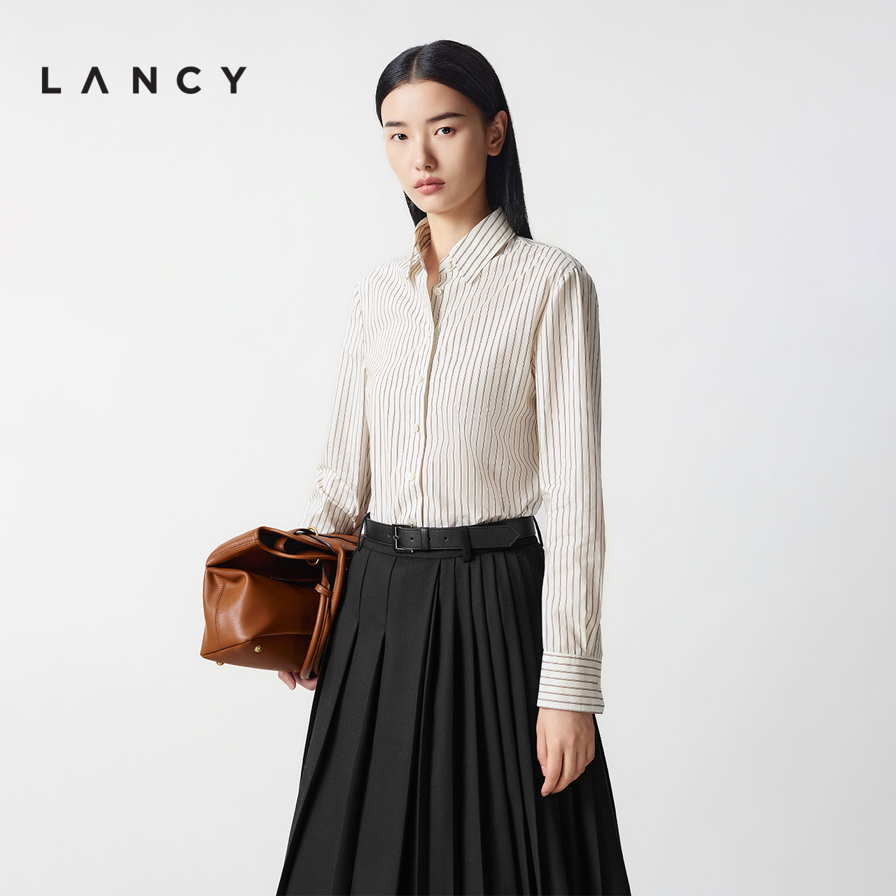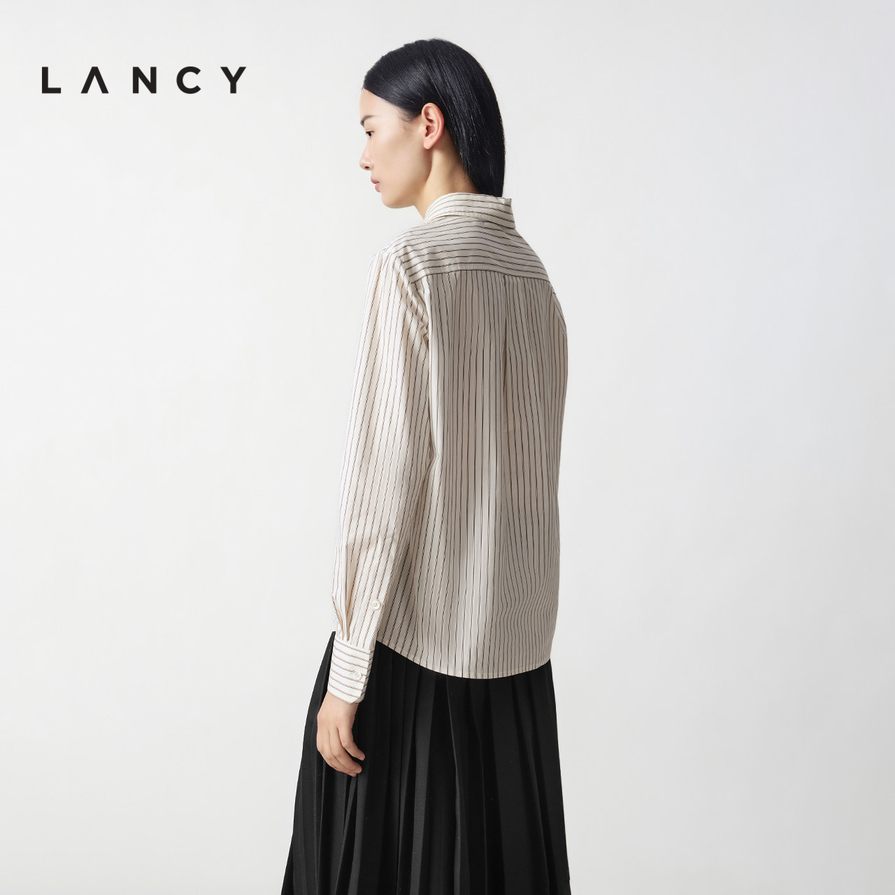 【宋佳同款】LANCY/朗姿25冬新款简约通勤条纹衬衫百搭翻领上衣女