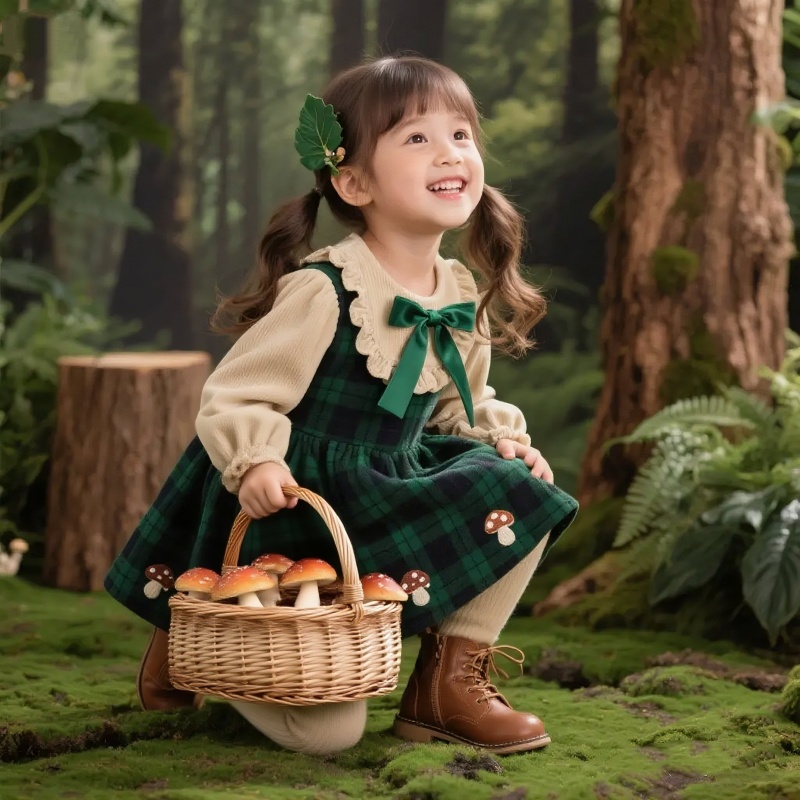 女童2025秋冬新款格子连衣裙宝宝韩版可爱洛丽塔假两件蓬蓬公主裙