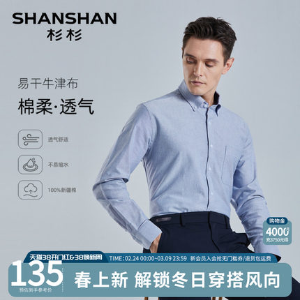 【纯棉】SHANSHAN杉杉长袖衬衫男商务休闲寸衫秋季新款纯色男衬衣