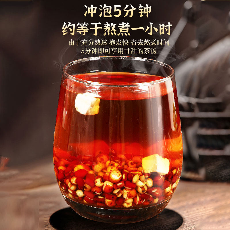 炒熟红豆薏米茶搭祛排湿气茶赤小豆芡实茯苓薏仁水去男女体内寒濕