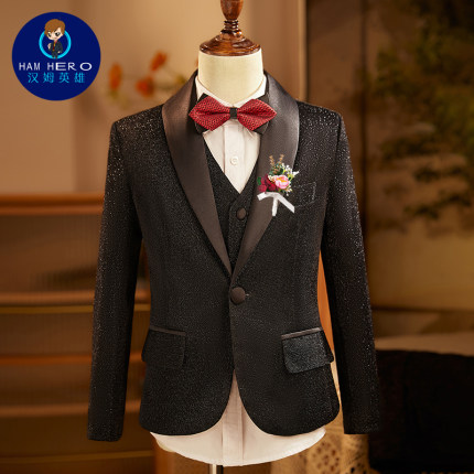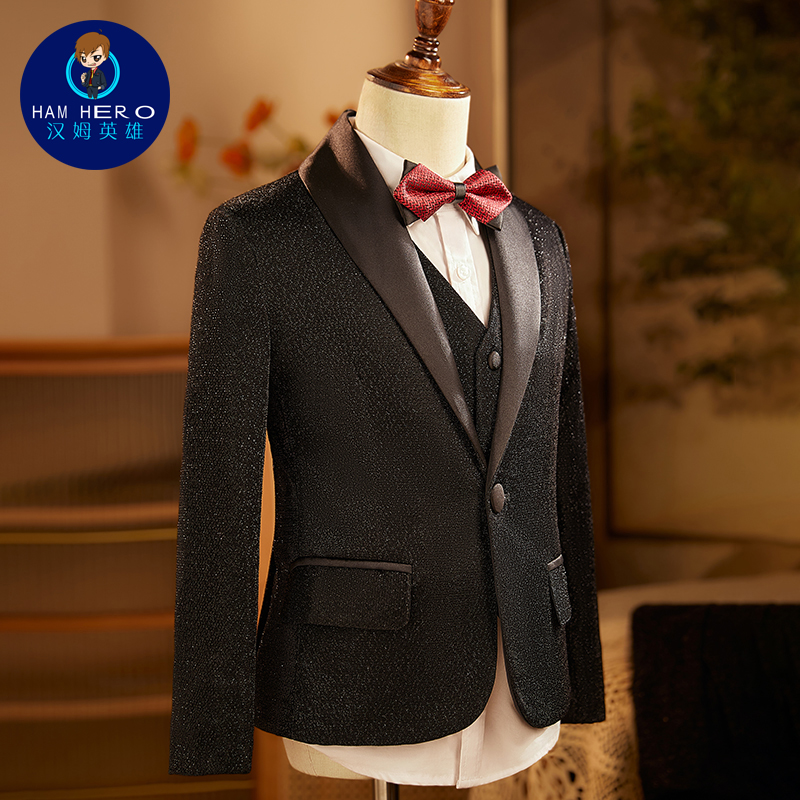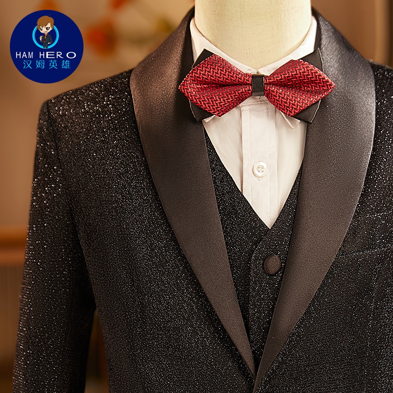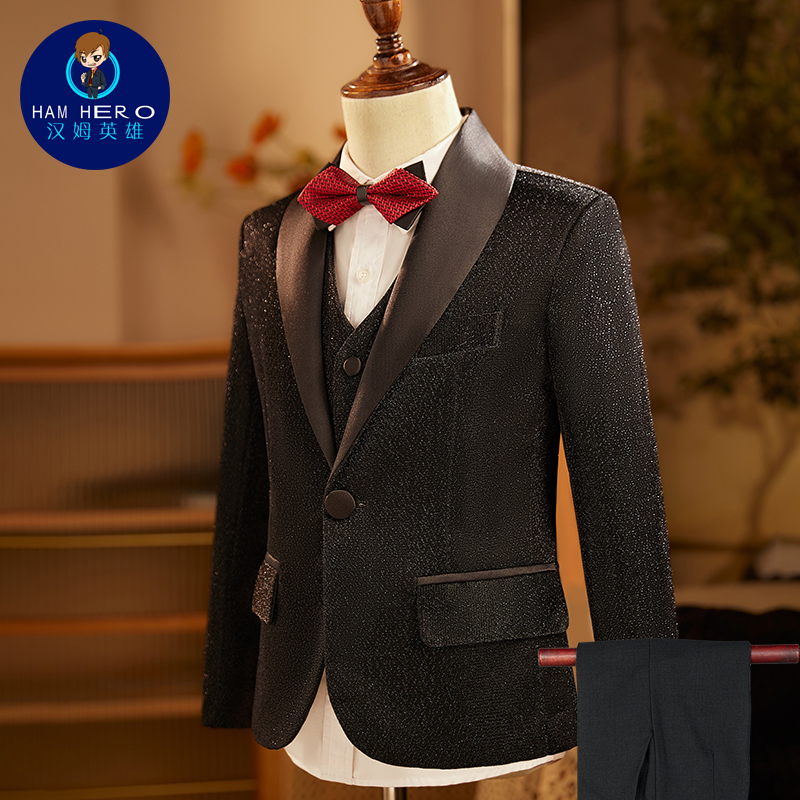 男童小西服礼服套装英伦风黑色庆典花童婚礼钢琴男孩主持人演出服
