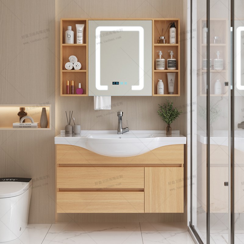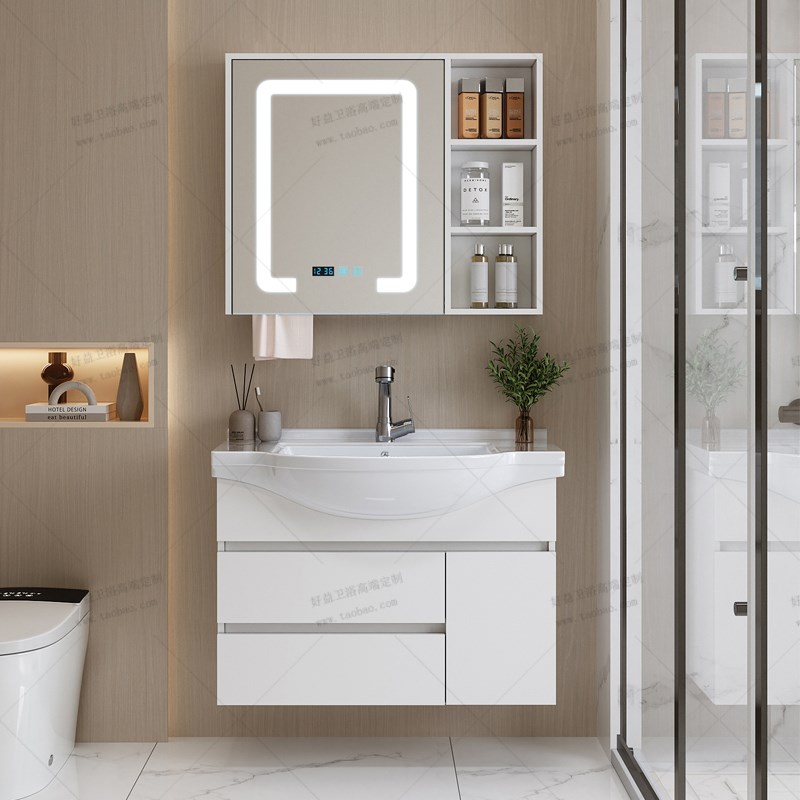 现代简约大肚盆浴室柜组合一体陶瓷盆悬空洗手洗脸白色洗漱台卫浴