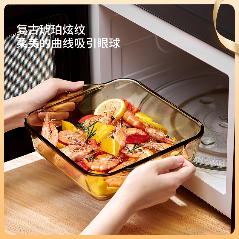 【百亿】康宁VISIONS 餐具玻璃烤盘微波炉长方形蒸盘烤鱼盘蒸烤箱