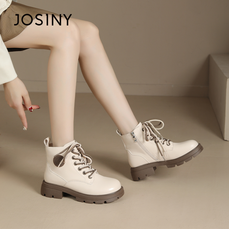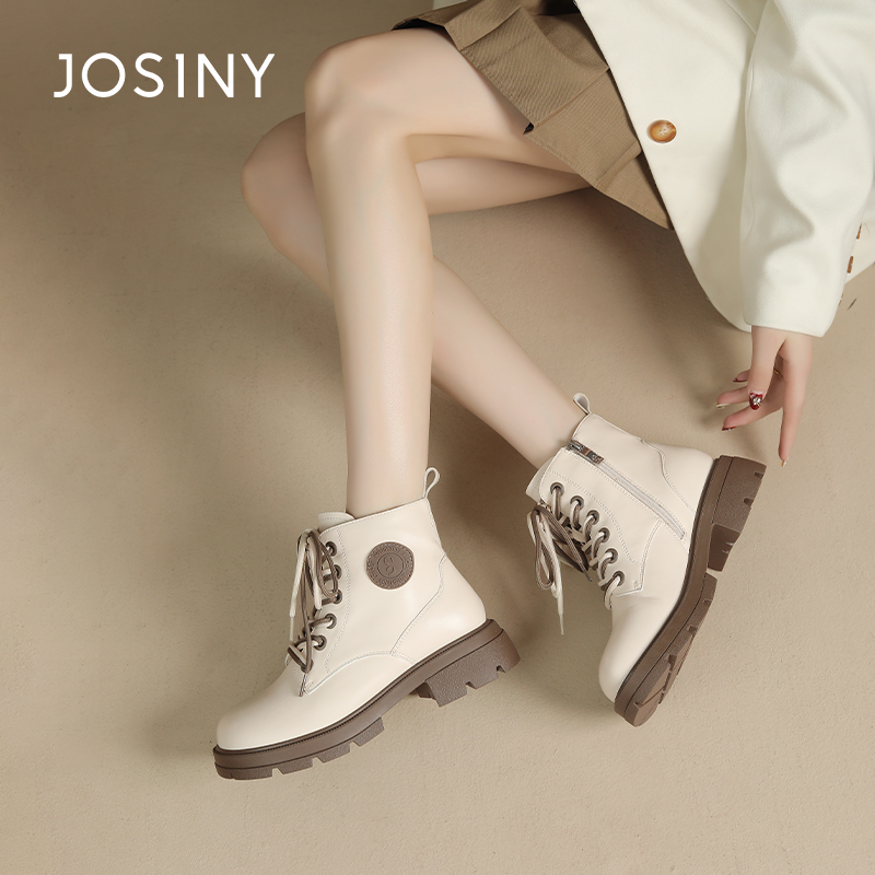 卓诗尼撤柜正品女鞋秋冬复古学院休闲马丁靴双色鞋带圆头厚底百搭