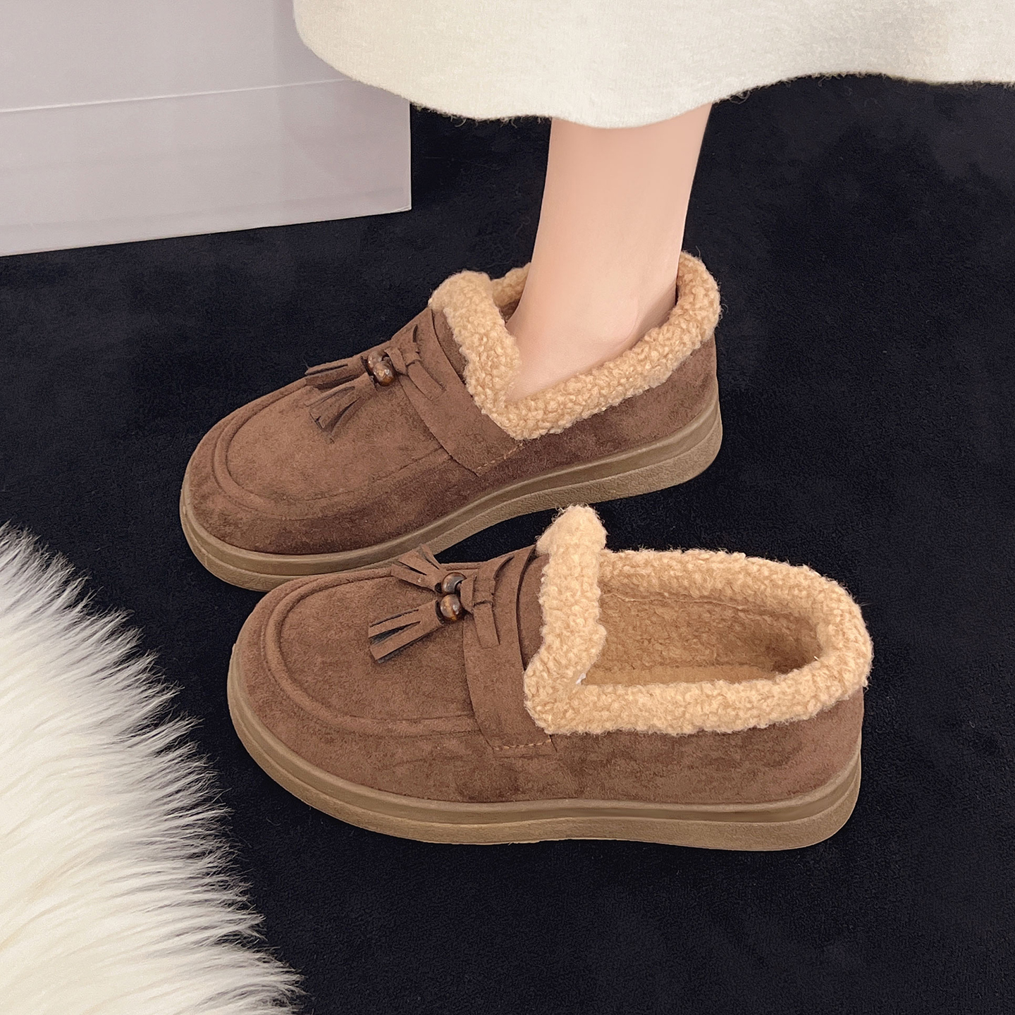 厚底乐福鞋女2025冬季新款流苏勃肯毛毛棉鞋加绒保暖百搭款雪地靴