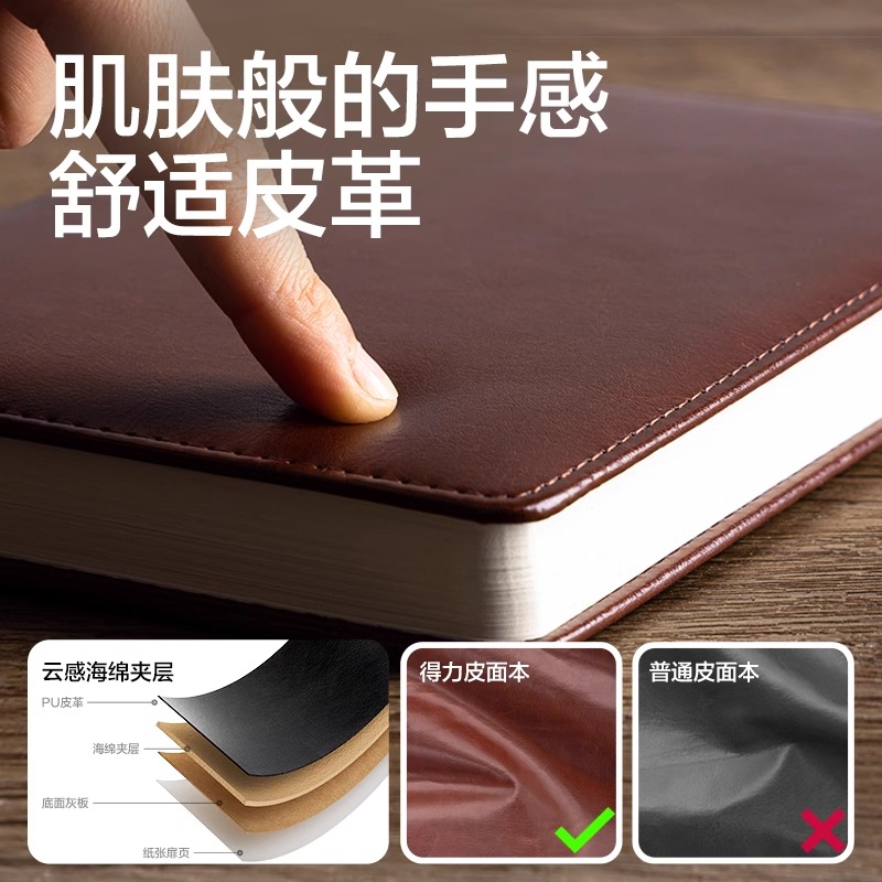 得力7901商务简约加厚记事本a5笔记本子日记本皮面本办公文具用品大学生会议记录本记录本考研手帐本文艺精致