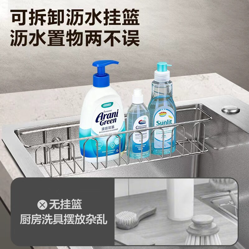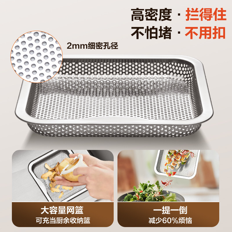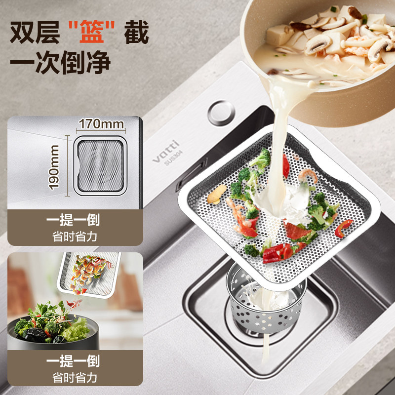 华帝水槽隔渣大单槽厨房水槽家用加厚304不锈钢不忧滤洗菜盆