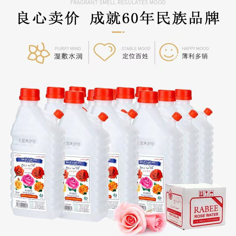 迪拜原装进口RABEE古拉拉比玫瑰水食品级1升装玫瑰纯露