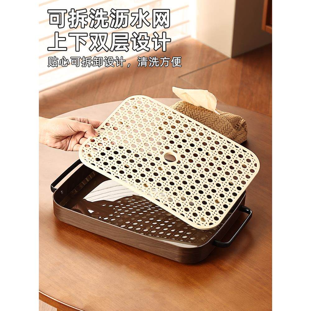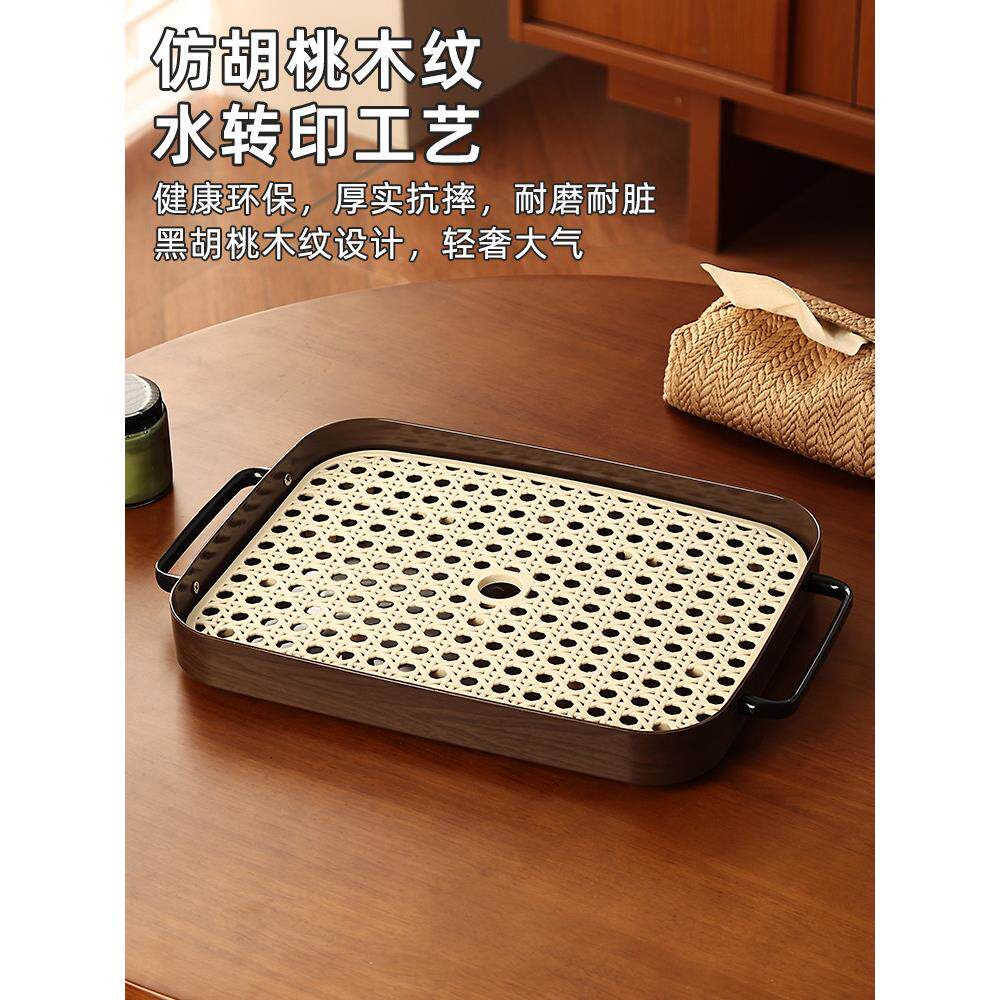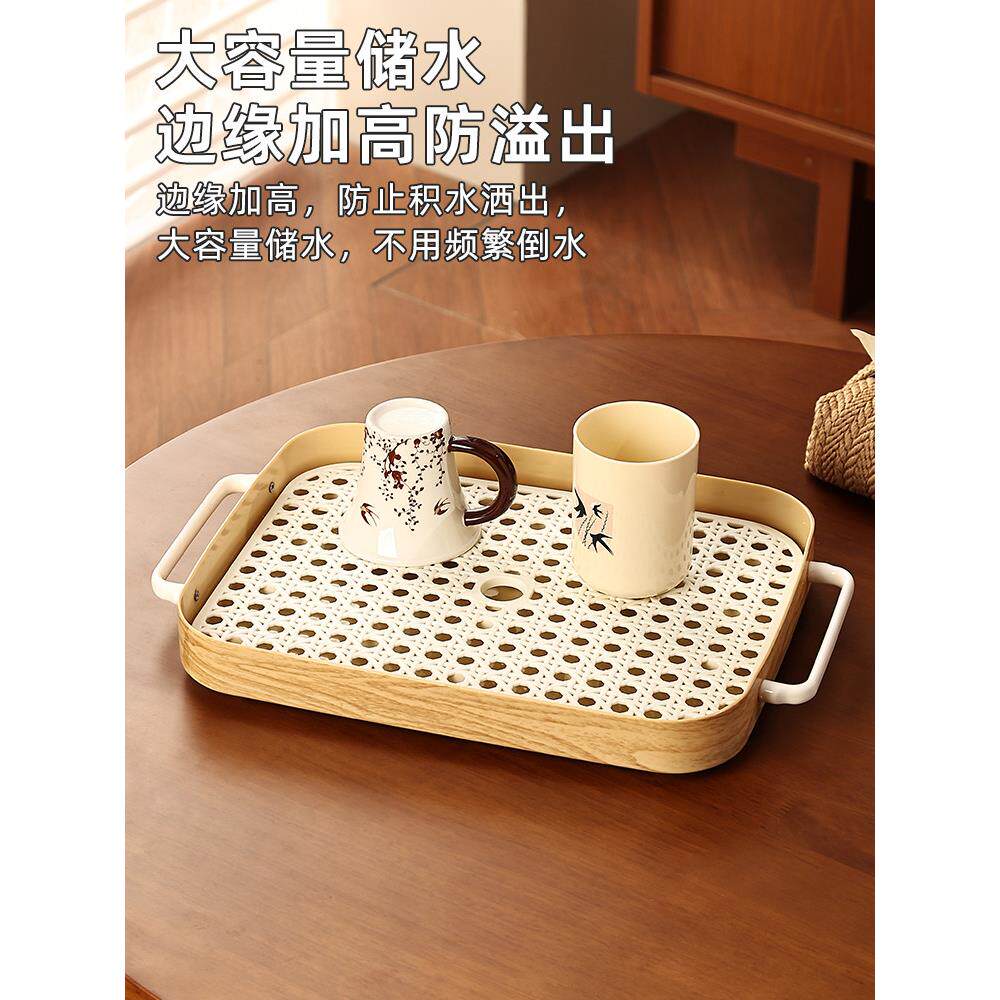 中古风茶盘沥水茶杯托盘长方形水果盘客厅轻奢家用小型水杯置物架