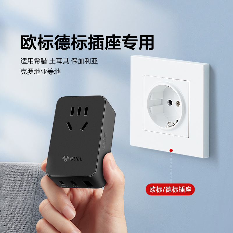 公牛希腊转换插头充电器旅游保加利亚土耳其克罗地亚欧标德标插座