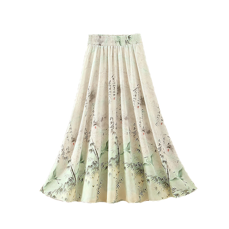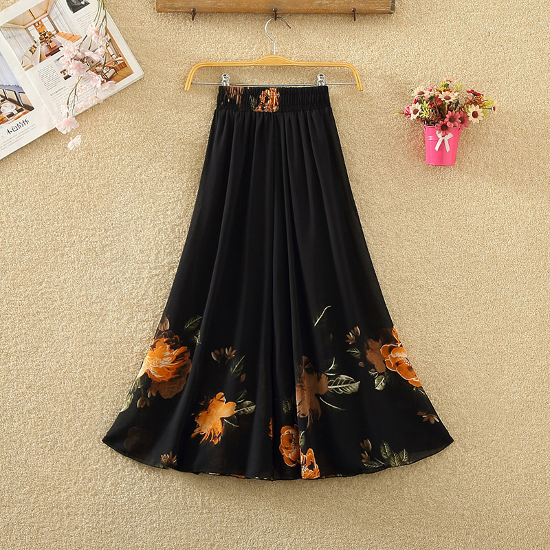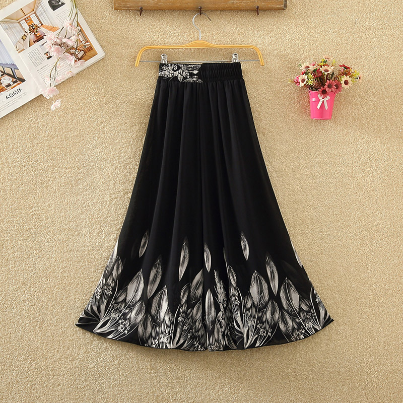 夏季大码女装雪纺半身裙妈妈装长裙中年广场舞裙松紧腰大摆A字裙