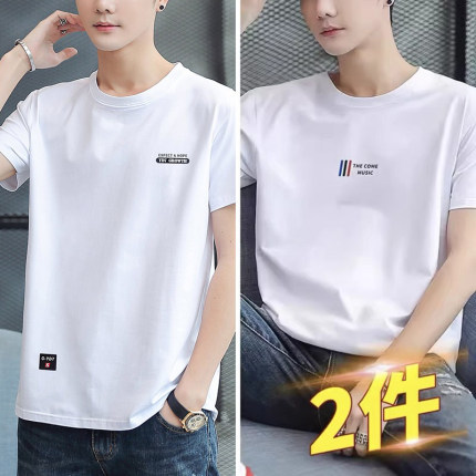 2件】2025夏季新款短袖T恤男士休闲时尚圆领上衣纯棉宽松短袖体恤