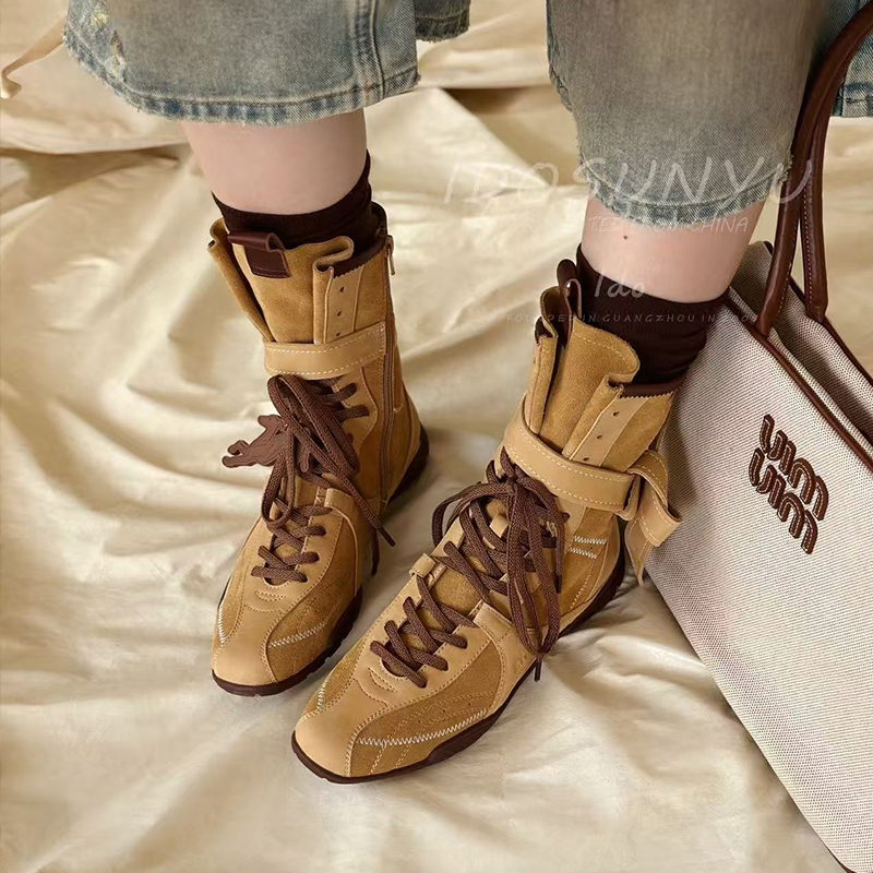 ido真皮马丁靴女2025秋款时尚百搭复古做旧系带英伦风休闲中筒靴