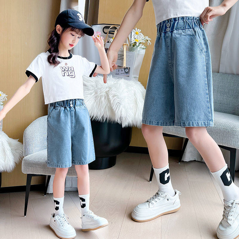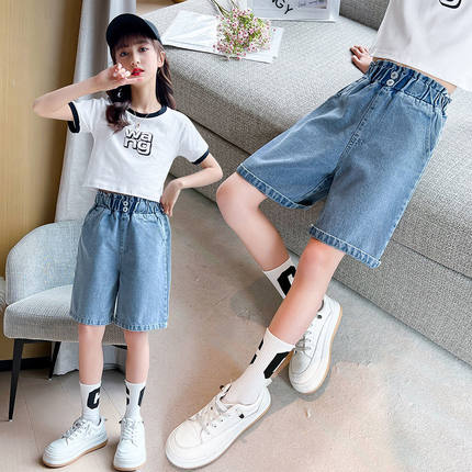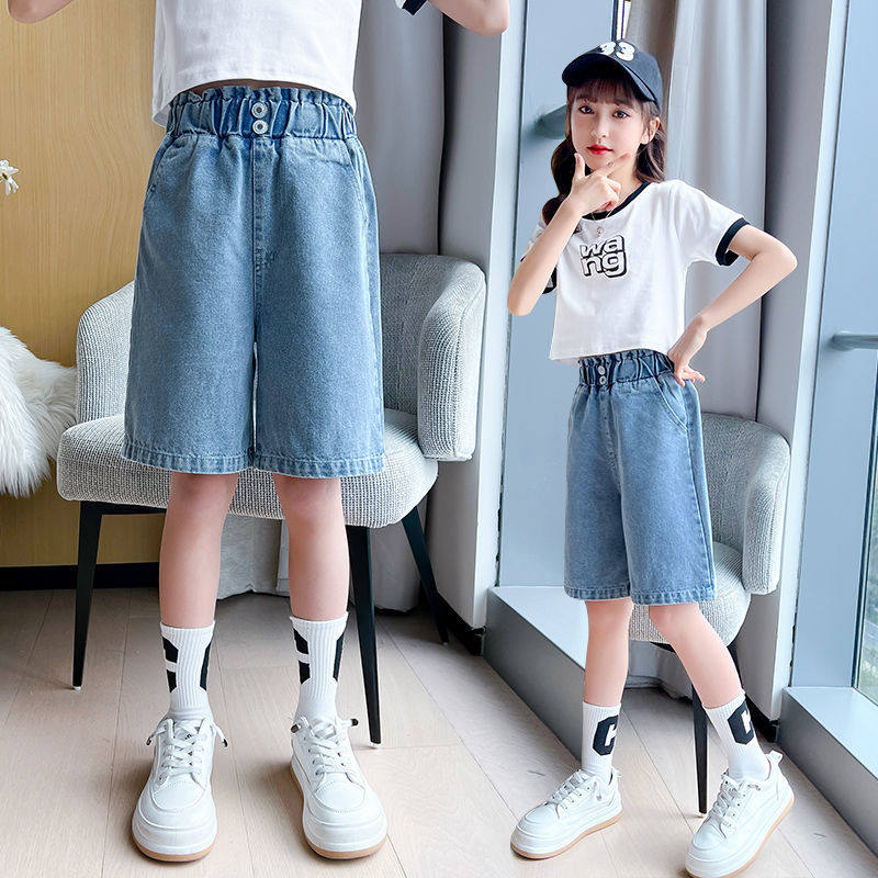 女童五分裤外穿中大童牛仔短裤夏季新款儿童中裤女孩宽松阔腿裤薄