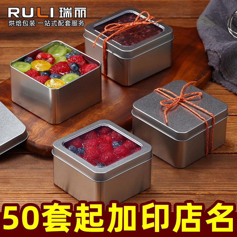 瑞丽提拉米苏盒子包装盒铁盒烘焙慕斯豆乳盒子正方形开窗罐子蛋糕