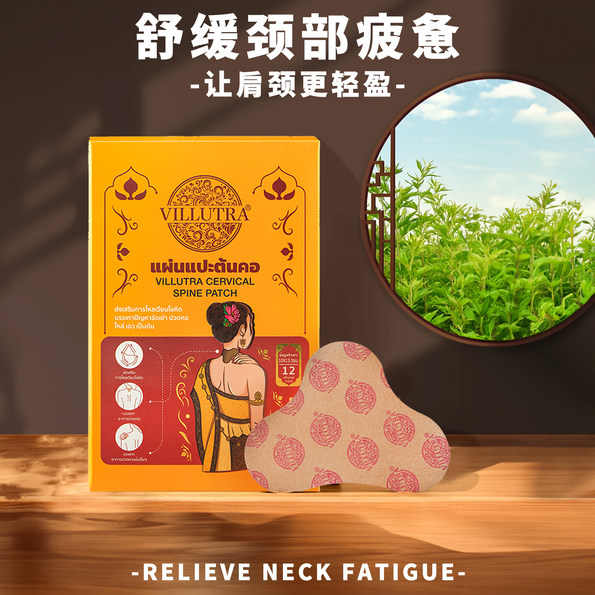 泰国原装Villutra颈椎贴办公居家久坐不适腰腿热敷膝盖肩颈酸痛贴