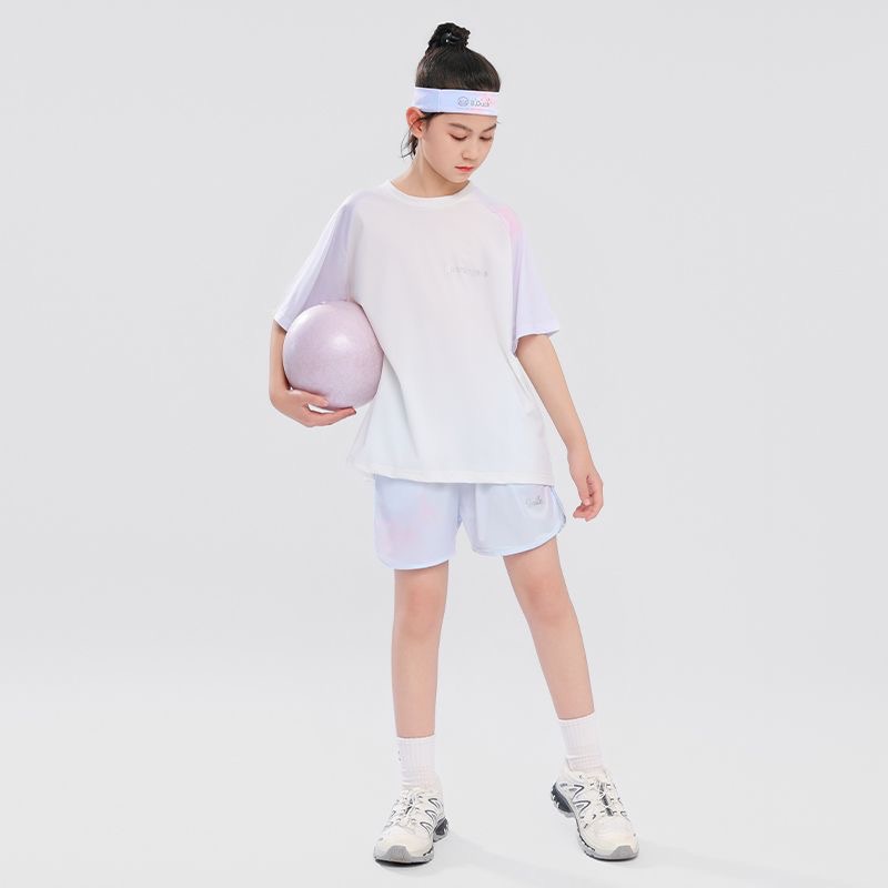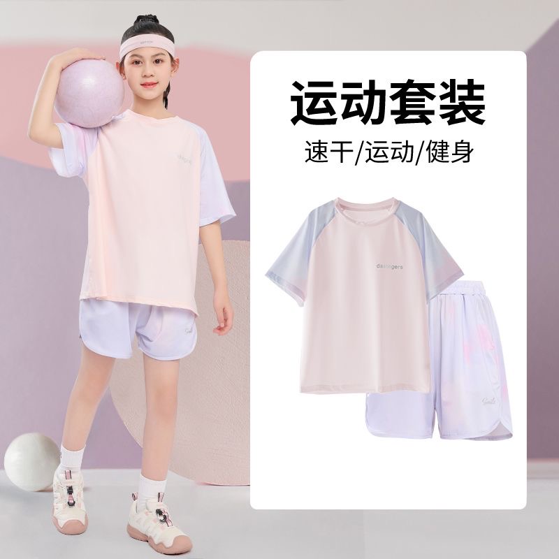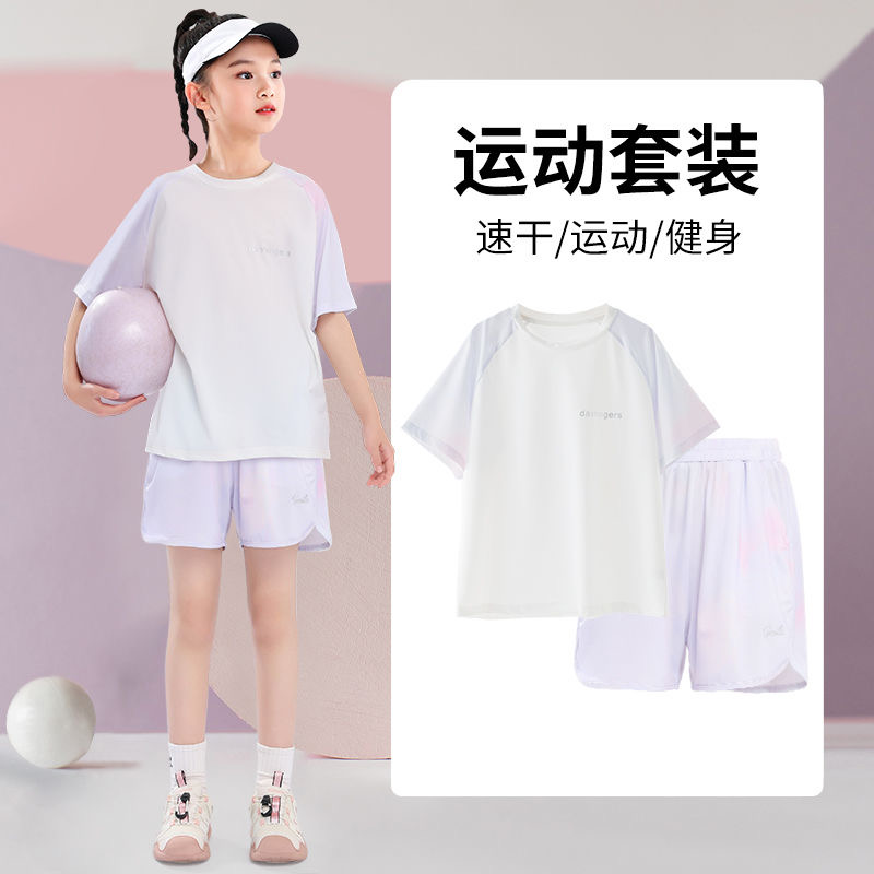 女童速干套装儿童夏季冰丝运动装女孩大童2025新款跑步服短袖短裤