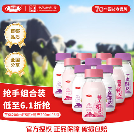 三元鲜活牛奶草莓树莓芋泥瓶装低温营养早餐鲜牛奶生牛乳纯牛奶