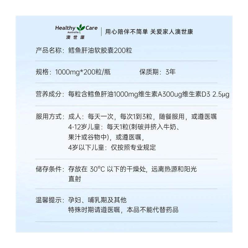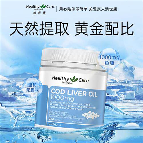 HealthyCare鳕鱼肝油软胶囊儿童成人深海鱼油保健品澳洲进口200粒