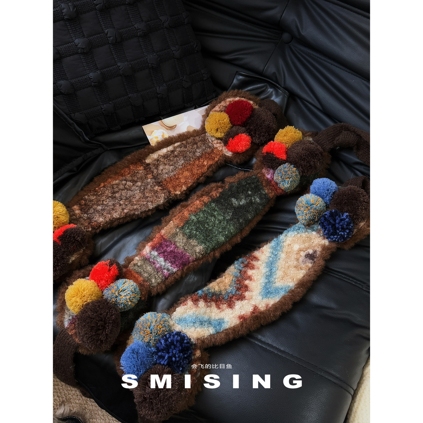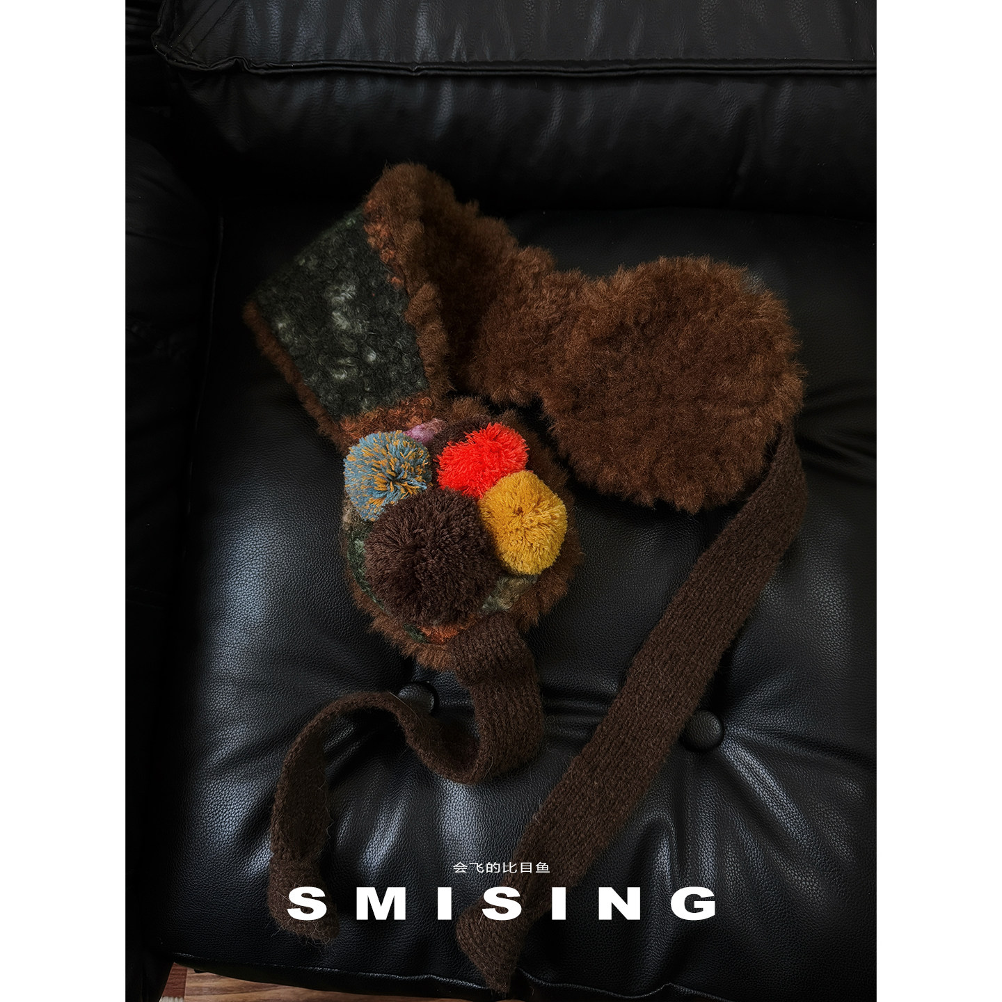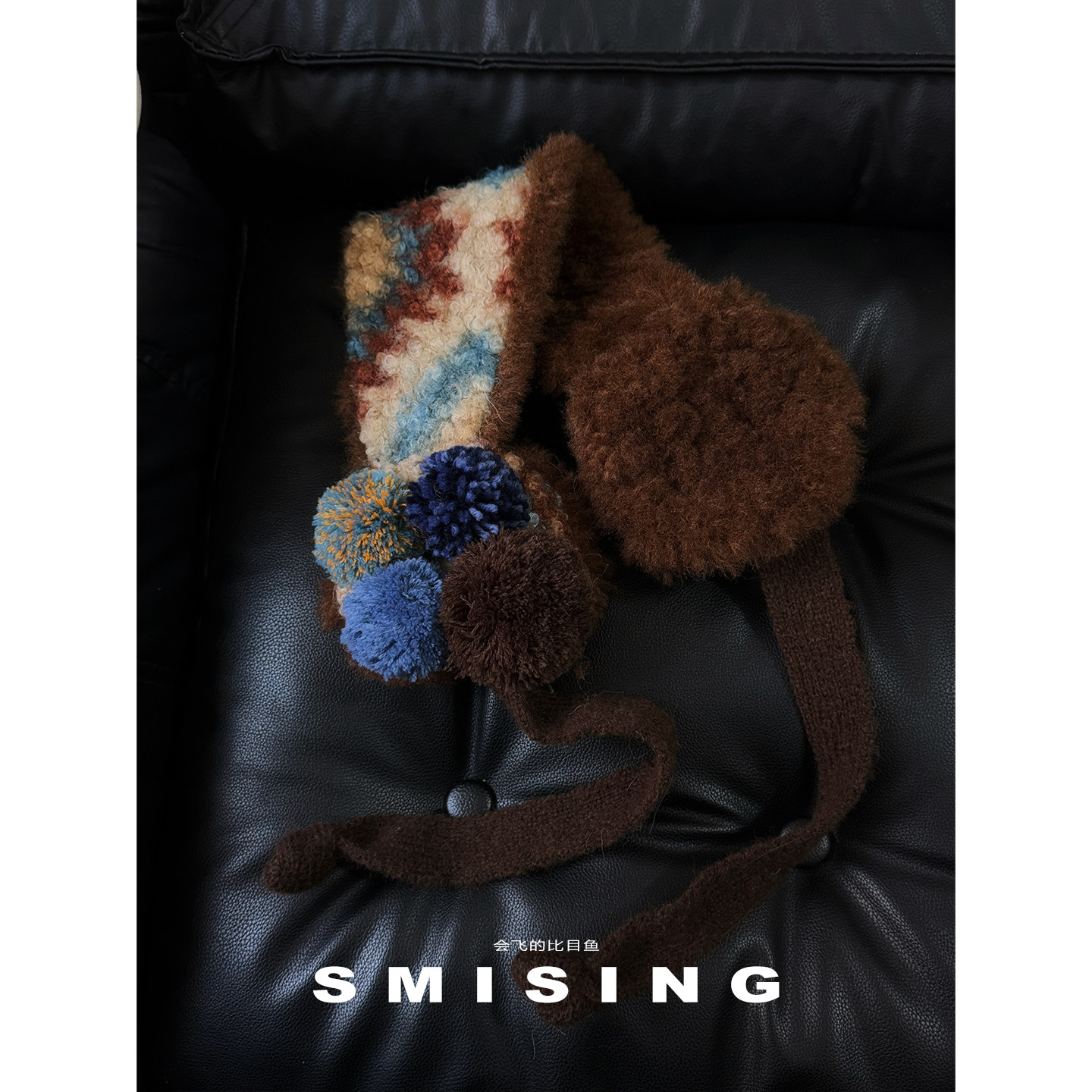 冬季复古毛绒针织系带保暖耳罩
