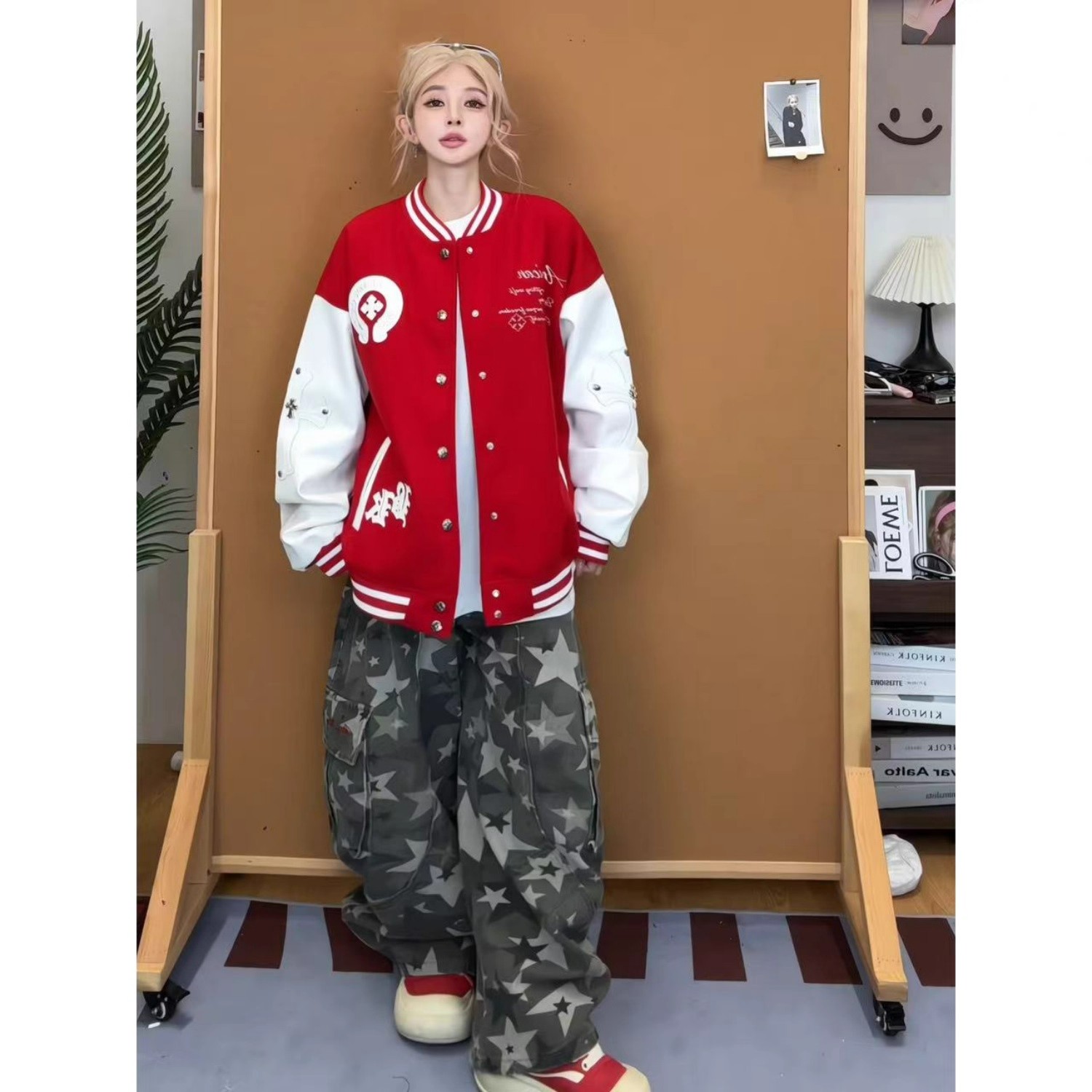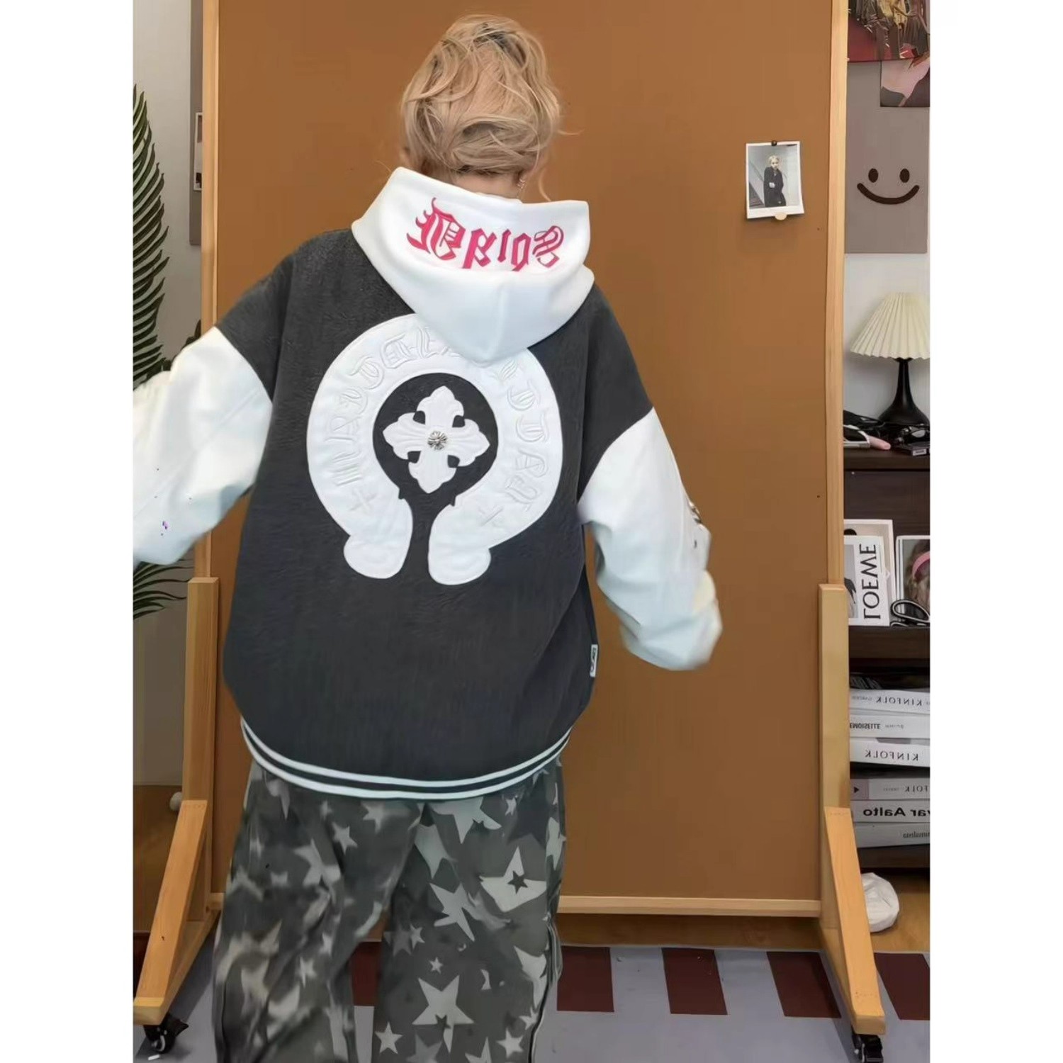 特大码300斤美式复古棒球服外套男女春秋款宽松休闲百搭夹克上衣2