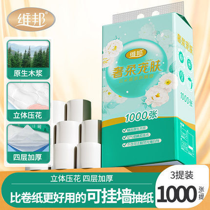 维邦奢柔宠肤悬挂式抽纸软包装面巾纸家用整箱实惠装加厚厕纸