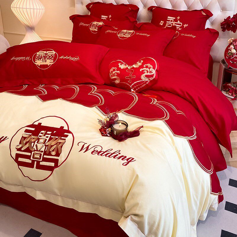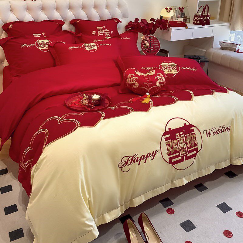 结婚四件套婚庆床j上用品喜庆大红色纯棉全棉2024新款床单女方陪