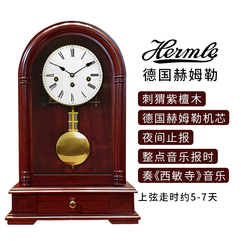 优选德国赫姆勒机械座钟客厅创意仿古大台钟复古桌面紫檀实木报时